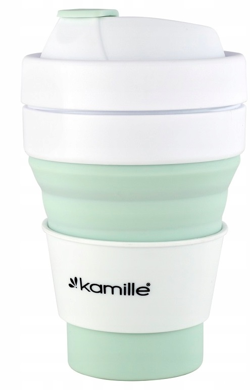 Складна силіконова чашка Kamille незамінна в автомобілі, ідеально підходить для роботи або для тривалих подорожей як у холодні, так і в теплі дні. Класична складна кухоль Kamille швидко складається в щільний диск. Він має кришку та термочохол для захисту вашої руки від гарячих або холодних напоїв.