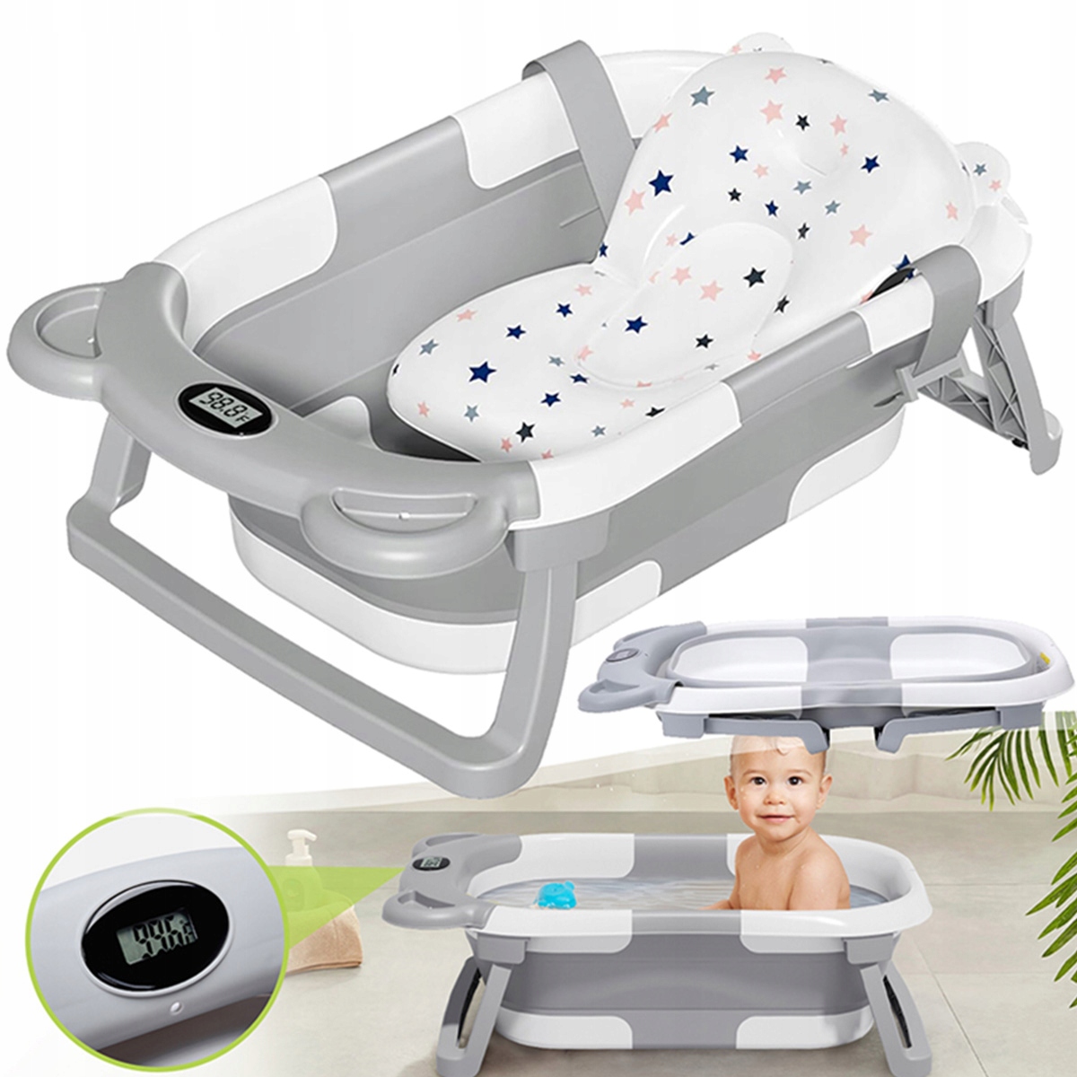 Складена дитяча ванна 0-15 місяців з термометром і плаваючою килимкою для ванни, портативною дитячою ванною, безпечною для дітей, ванною для подорожей, розміщенням, сидячи або лежачи, стабільна та проти ковзання, дуже великі і товсті 67 х 42 х 21 см, сірий 1>