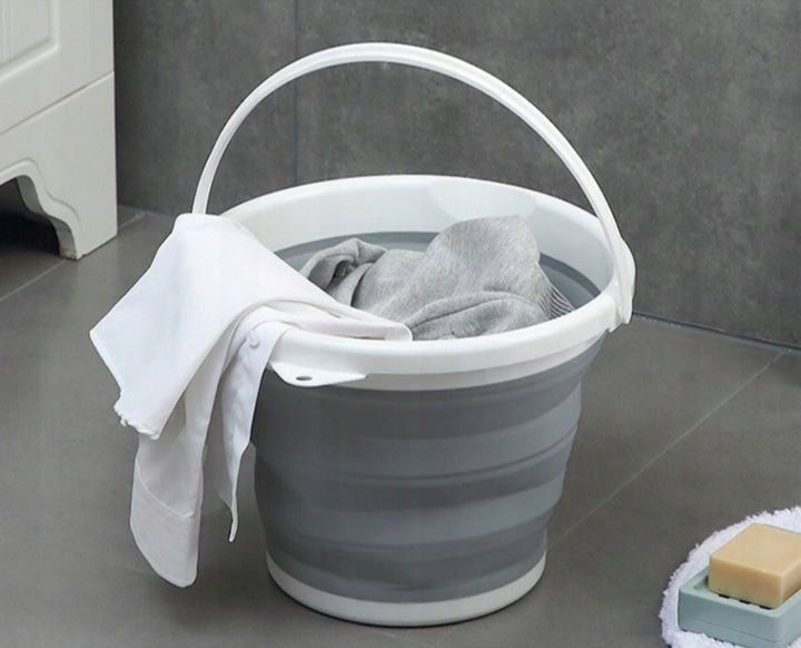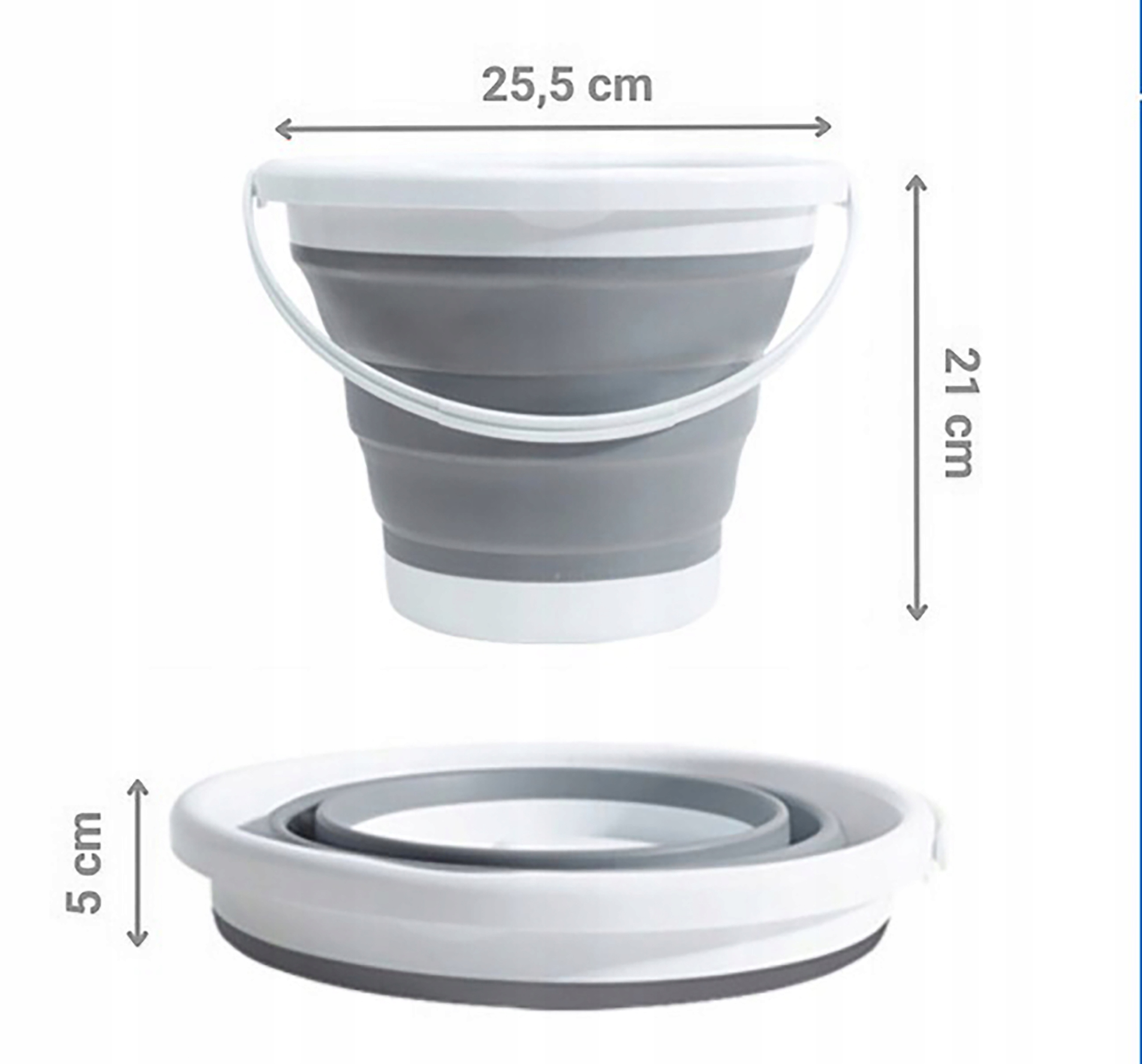 Посилене складне відро — чудова річ, яка стане в нагоді в кожному домі. Виготовлений з міцного і товстого силікону, а низ і верх виготовлені з міцного пластику.