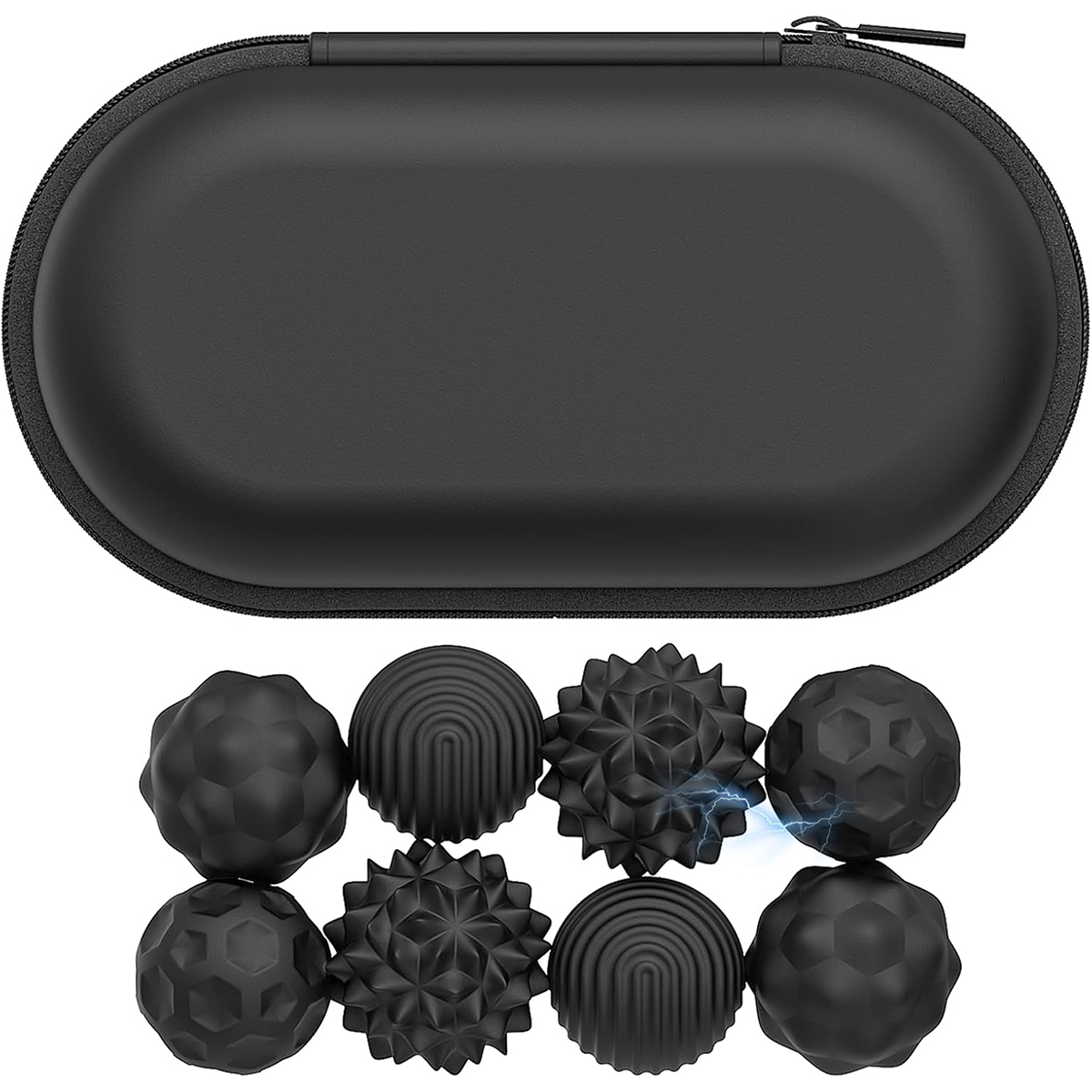 Наші магнітні кульки виготовлені з тактильного силікону, оснащені 4 різними опуклими поверхнями для задоволення різноманітних потреб у легкій, середній та інтенсивній стимуляції, забезпечуючи нескінченні відчуття від дотику та розслаблюючий масаж, який заспокоює дискомфорту та стресу.