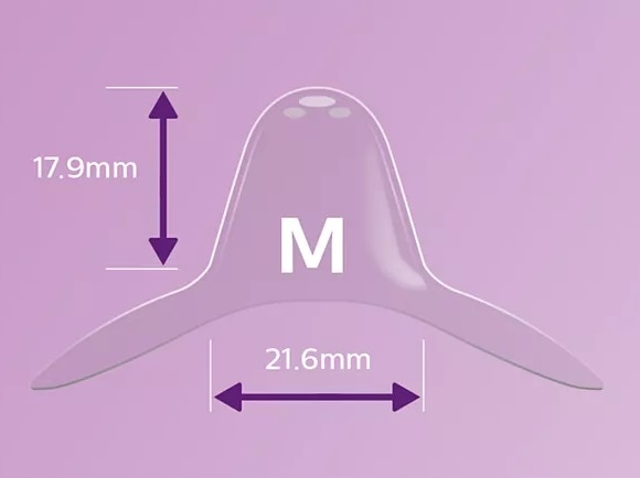 Щитки для сосків доступні двох розмірів. Малі щитки підходять для сосків діаметром 12 мм і більше, а середні щитки підходять для сосків діаметром до 21 мм. Щоб підібрати свій розмір, сядьте зручно та надіньте одну з накладок на соски. Поверніть щиток за годинниковою стрілкою та вставте ніпель у тунель. Потім розтягніть основу щита навколо ареоли. Якщо між ніпелем і силіконом є проміжок 2 мм, щиток підходить правильно. Порада: розмір вказано для соска, а не ареоли. Не знаєте, який розмір вибрати? Зверніться по допомогу до лікаря.