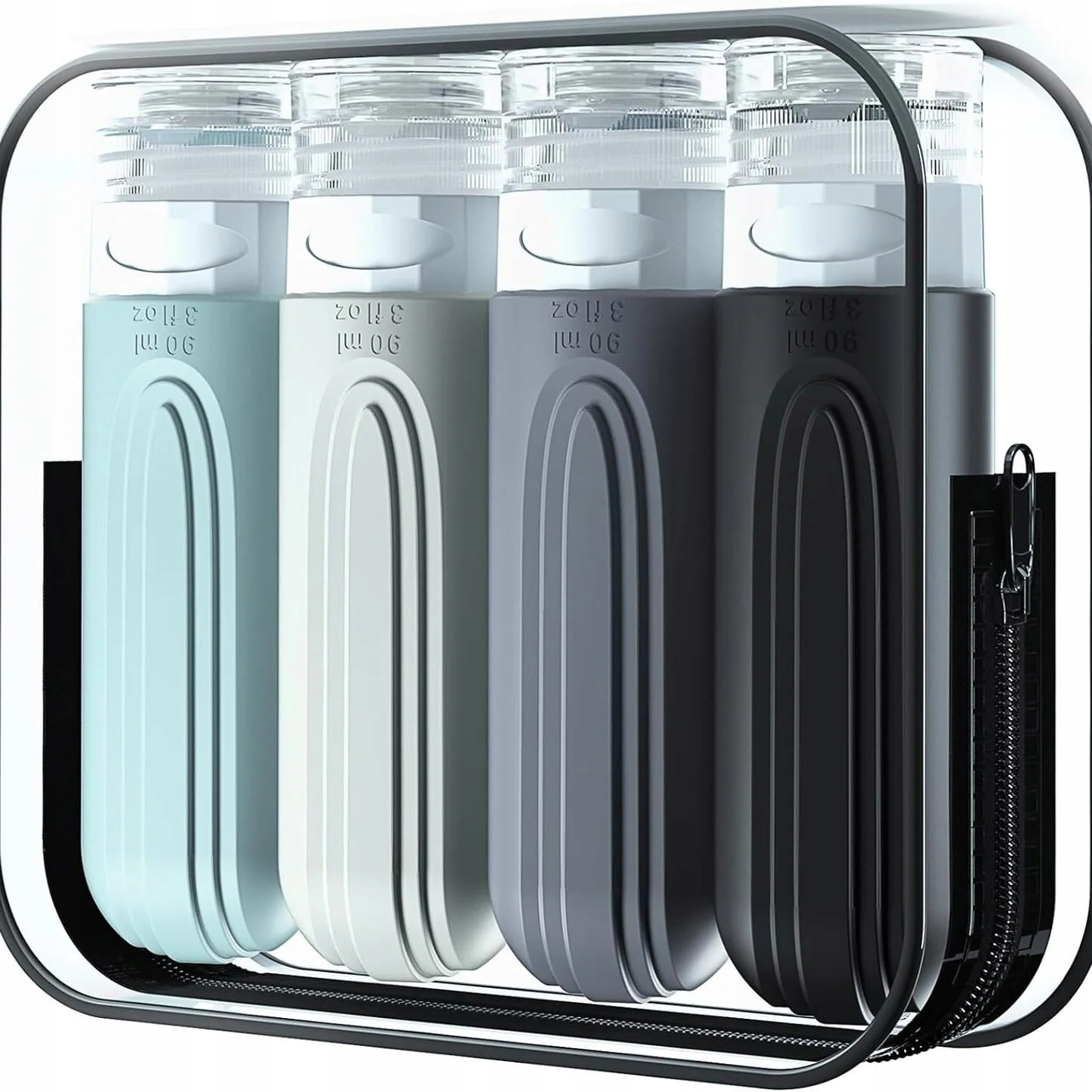 Пляшки для подорожей для 90 мл косметики, контейнери для подорожей, без BPA, щільно, для повторного сполучення, рідини, силікону, стислих аксесуарів для подорожей для шампуню, кондиціонера, бальма (4 штуки)