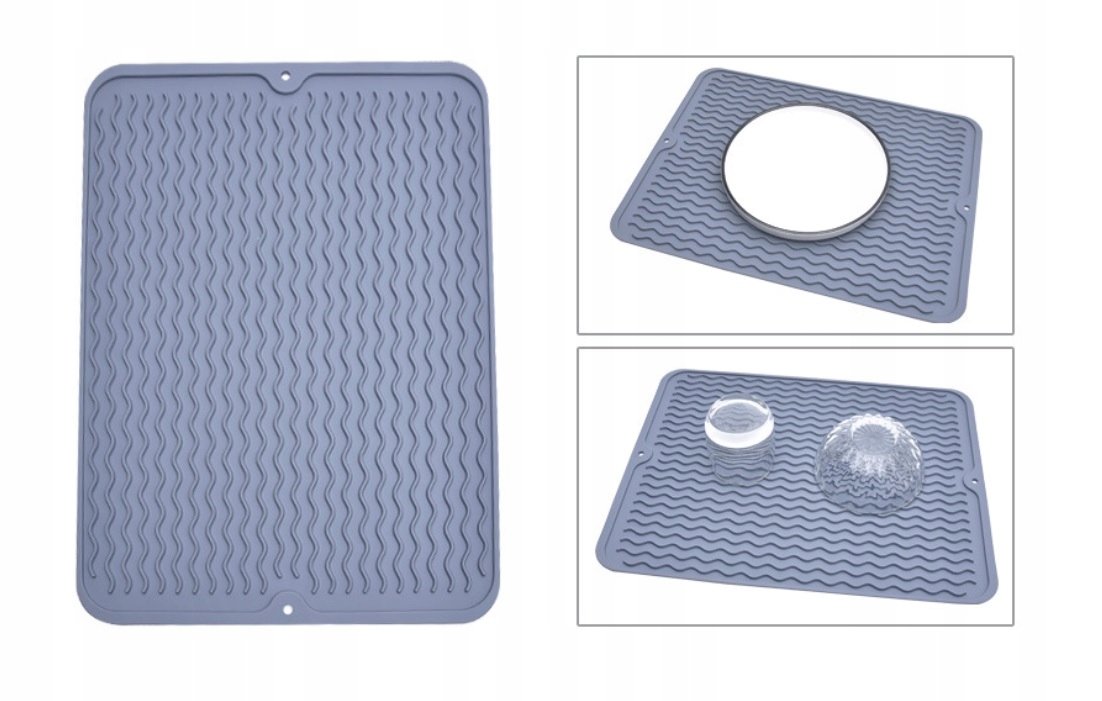 Ідеально підходить до будь-якого типу обробки кухні. Він не займає місця і надзвичайно функціональний. Завдяки продуманій конструкції килимок чудово відводить воду, а після використання його можна швидко та легко сховати куди завгодно.
