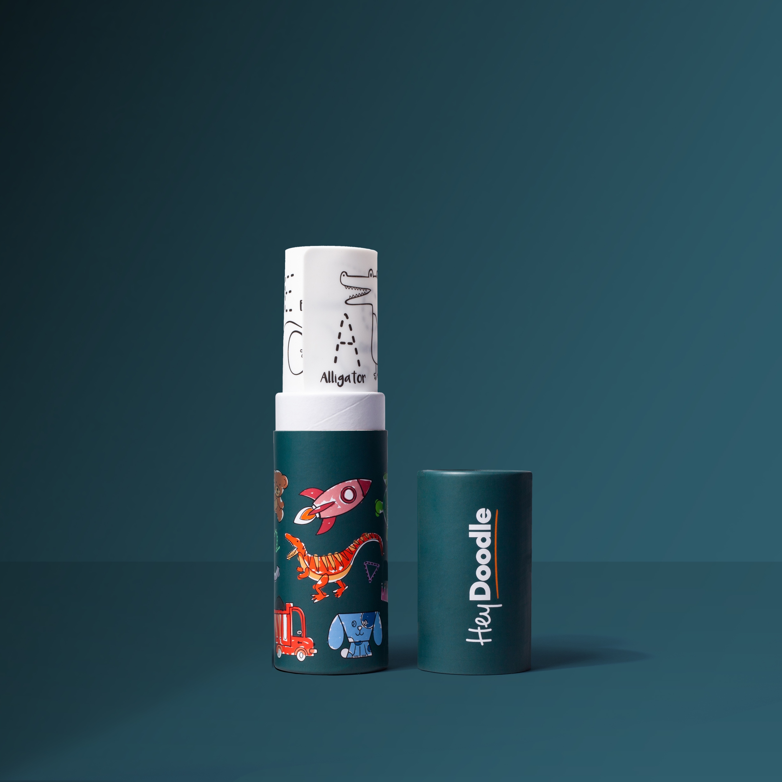 Австралійська компанія HeyDoodle розробила упаковку, щоб вона була красивою та практичною. Килимки ідеально підійдуть як подарунок, а потім для гри вдома, у дорозі, в машині, у бабусі чи тітки, а після гри ви можете знову заховати маркери та килимок в естетичну упаковку.