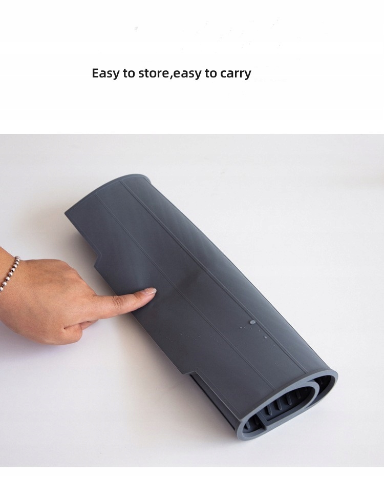 Килимок для сушіння посуду розміром 43 x 33 см силіконовий, міцний і безпечний для вашого столового посуду для вечері чи десерту. Це одностороння модель з великою прямокутною поверхнею. Ви можете використовувати його регулярно, не турбуючись про вологість. Виріб забезпечує стійке положення і не ковзає під навантаженням побутової порцеляни, кераміки та посуду. Це допоможе вам захистити кухонну стільницю від попадання води з посуду. Ви можете покласти його в ящик, коли він вам не потрібен. З одного боку має занижений край. Він служить для зливу води. Модель добре підійде для мийок під стільницю, так як все, що вам потрібно зробити, це розташувати її так, щоб нижня сторона обода прилягала до раковини. Вода з вимитого посуду потім буде йти в сам злив. Ви також можете взяти такий силіконовий килимок з собою в подорож, щоб забезпечити гігієнічне сушіння посуду в будь-яких умовах.