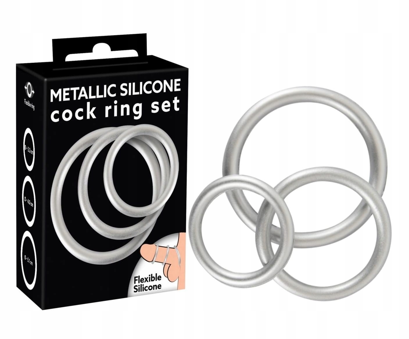Набір із 3 силіконових кілець для пеніса з металевим блиском.