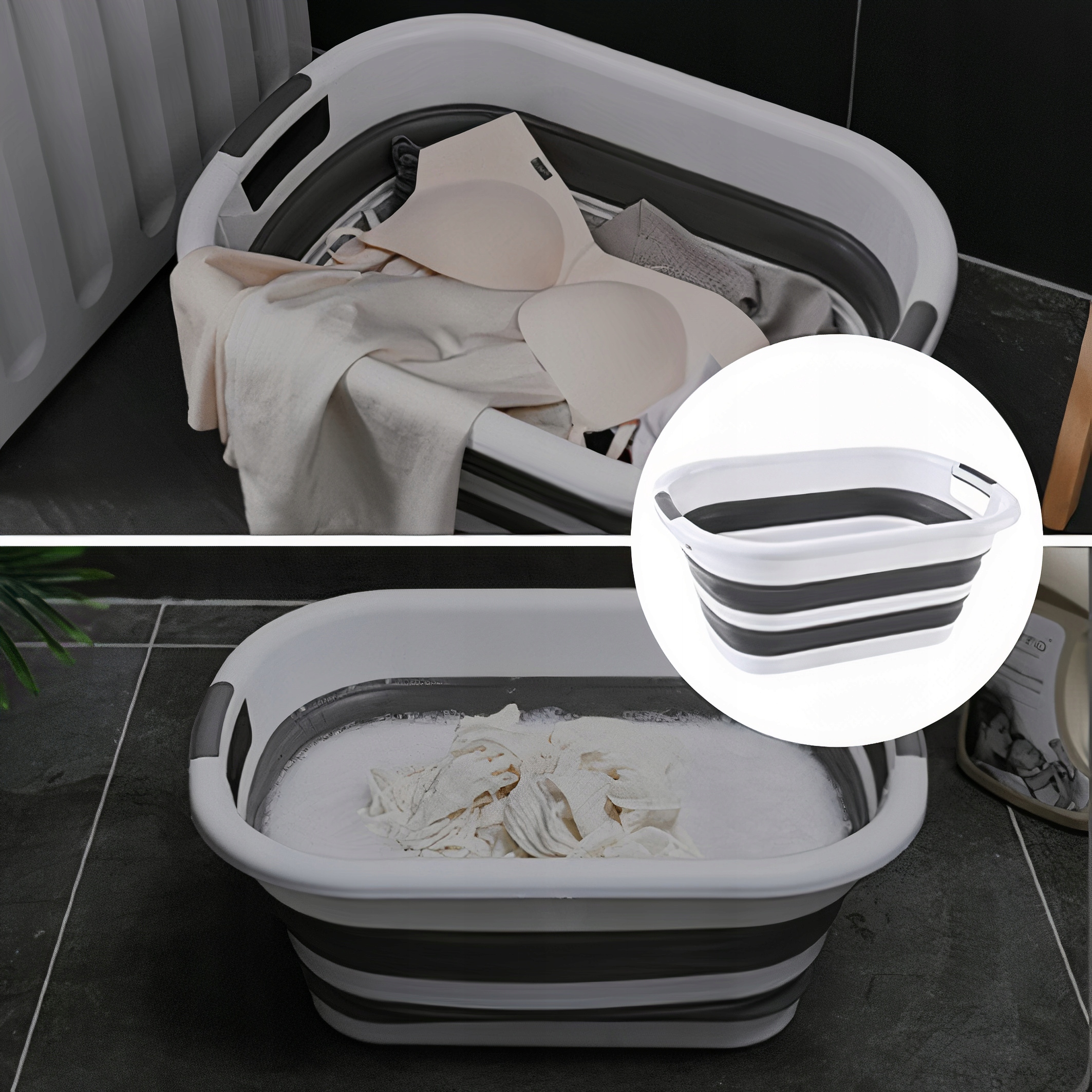 Багатофункціональна складна силіконова миска виготовлена з високоякісного пластику в поєднанні з міцним силіконом. Цей складаний кошик для білизни складається, коли він не використовується, що полегшує його зберігання.
