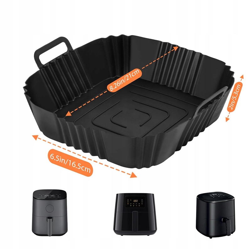 Ідеально підходить для квадратних кошиків для фритюрниці розміром від 7" до 9" (3 л-6,5 л). Наші силіконові вкладиші для фритюрниці сумісні з різними моделями фритюрниць, такими як Philips Essential Airfryer - 4,1 л/Philips Airfryer 2000 Series 4,2 л/6,2 л/COSORI Hot Air Fryer Airfryer 3,8-4,7 л, Ninja PRO Air Fryer Hot Air Fryer, 4,7 л