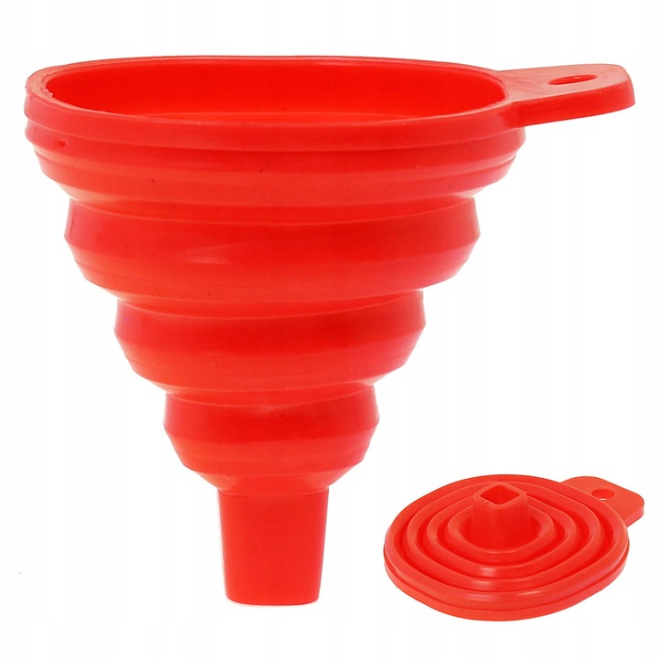 Складна силіконова лійка є необхідним аксесуаром для кожної ремонтної майстерні та гаража. Його можна використовувати для заливання охолоджуючої рідини, склоомивача, моторного масла та інших робочих рідин. Форма і розмір лійки адаптовані до більшості заливних отворів для рідин і масел. Завдяки можливості складання його дуже легко зберігати, його можна тримати в ящику в гаражі, машині або повісити на гачок.