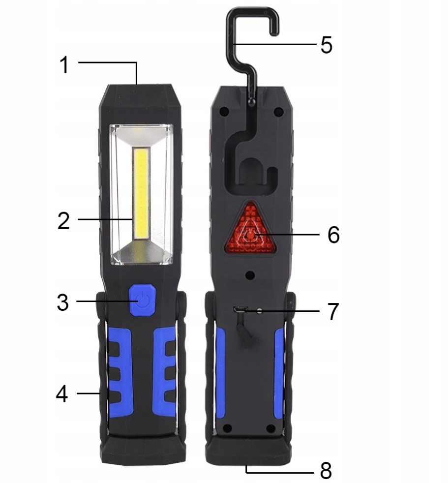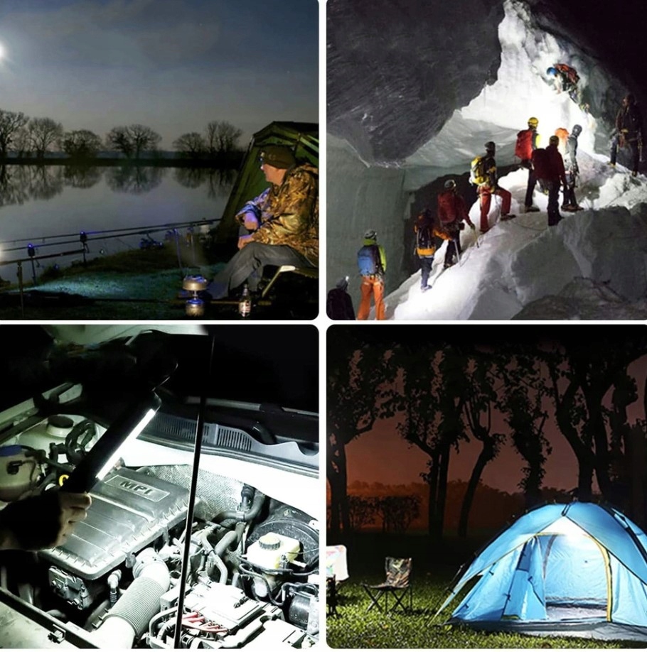бездротовий світильник, оснащений гачком, 2 магнітами та обертовим затискачем 180 ° та 360 °, дає можливість працювати у необмеженій кількості позицій.