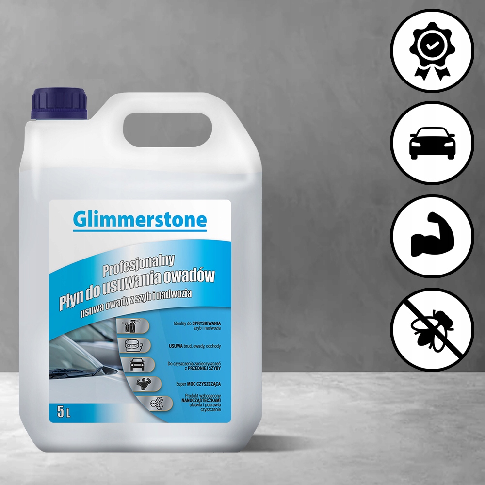 Glimmerstone — це універсальний засіб, призначений для пом’якшення, розчинення та видалення комах і органічні залишки з кузова та вікон автомобіля. Препарат чудово розчиняє залишки снарядів, черв'яків і старий засохлий бруд на поверхні транспортних засобів.