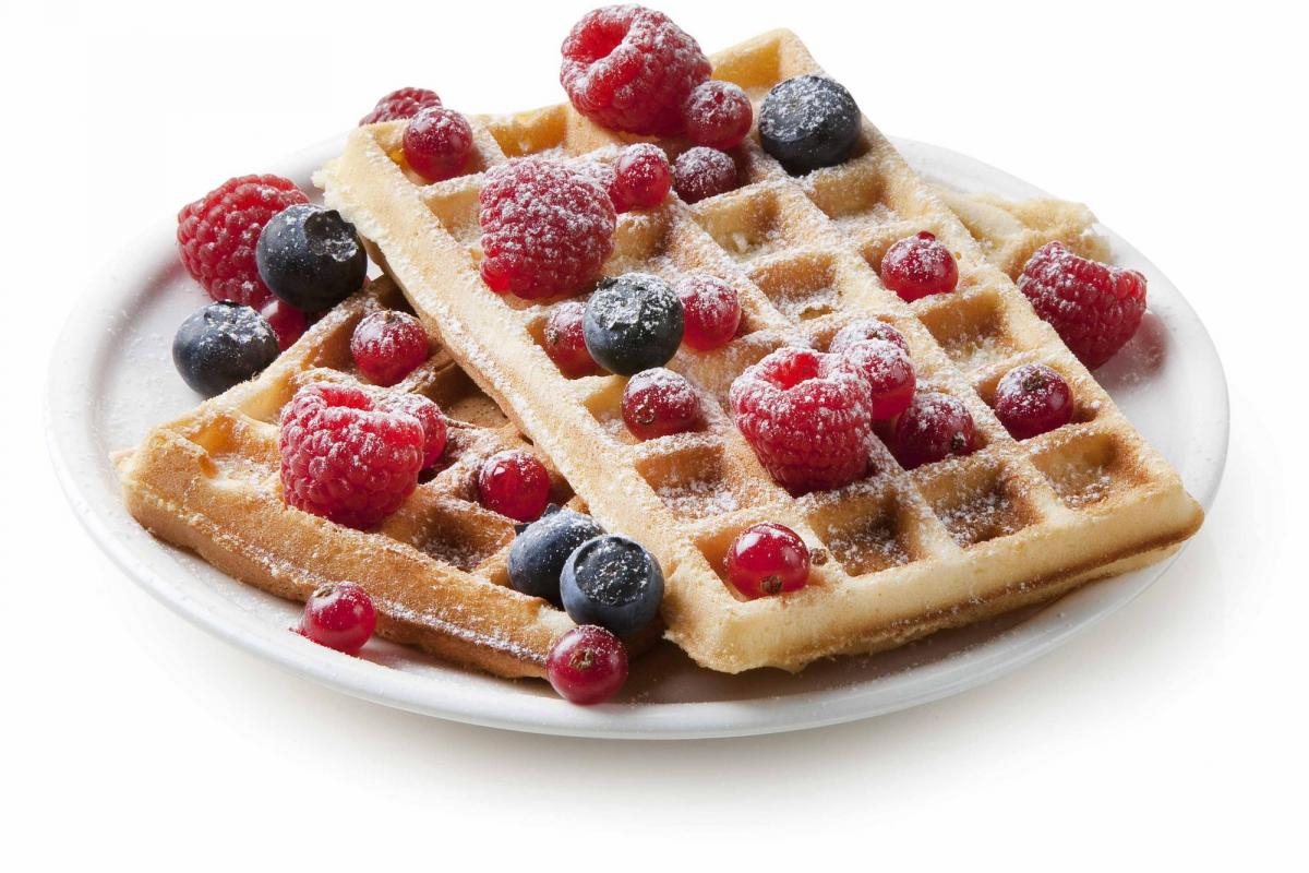Підготуйте в той же час 2 великі , домашні вафлі . Гарячий, хрусткий зовні і м'який всередині. Глибокі решітки чудово тримають аксесуари на місці.