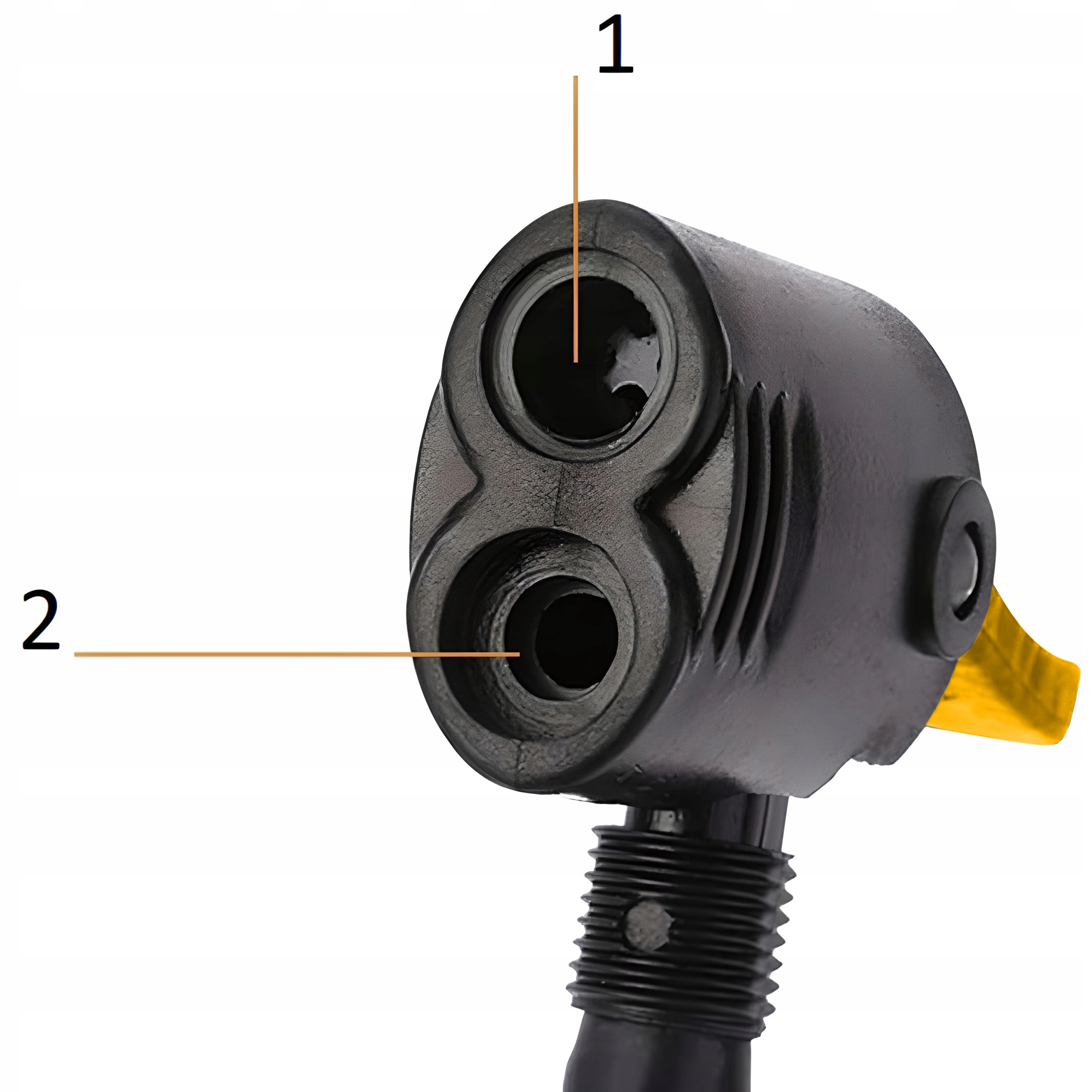 Універсальний автомобільний двопоршневий насос - інструмент, який покращує роботу не тільки вдома. Завдяки своєму дизайну його також можна використовувати в сервісі та для індивідуального обслуговування вдома. Ефективна двопоршнева система забезпечує набагато швидше надування. Насос ідеально підходить для накачування велосипедних і мотоциклетних коліс, м'ячів, матраців і автомобільних коліс. Має ніжку з фіксатором і манометр до 10 бар.
