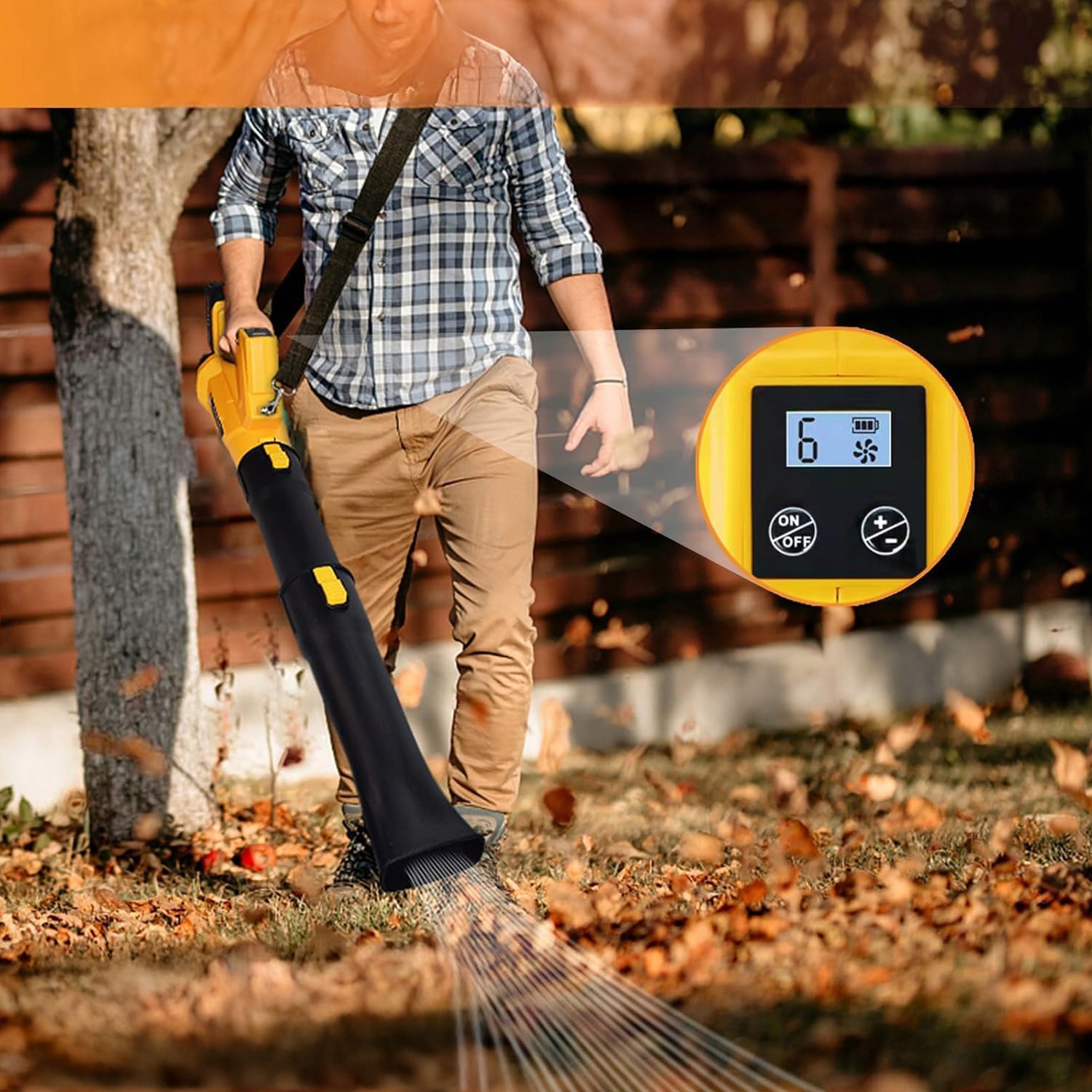 ✔ -на оснащений великою ємністю 21 В акумулятором і ємністю 5,2 AH, що забезпечує постійне використання. Вбудований дисплей показує стан заряду акумулятора та налаштування швидкості, завдяки якому ви завжди знаєте, скільки енергії залишилось. (Примітка: Для оптимальної ефективності перед зарядкою чекайте, коли акумулятор охолоне.)