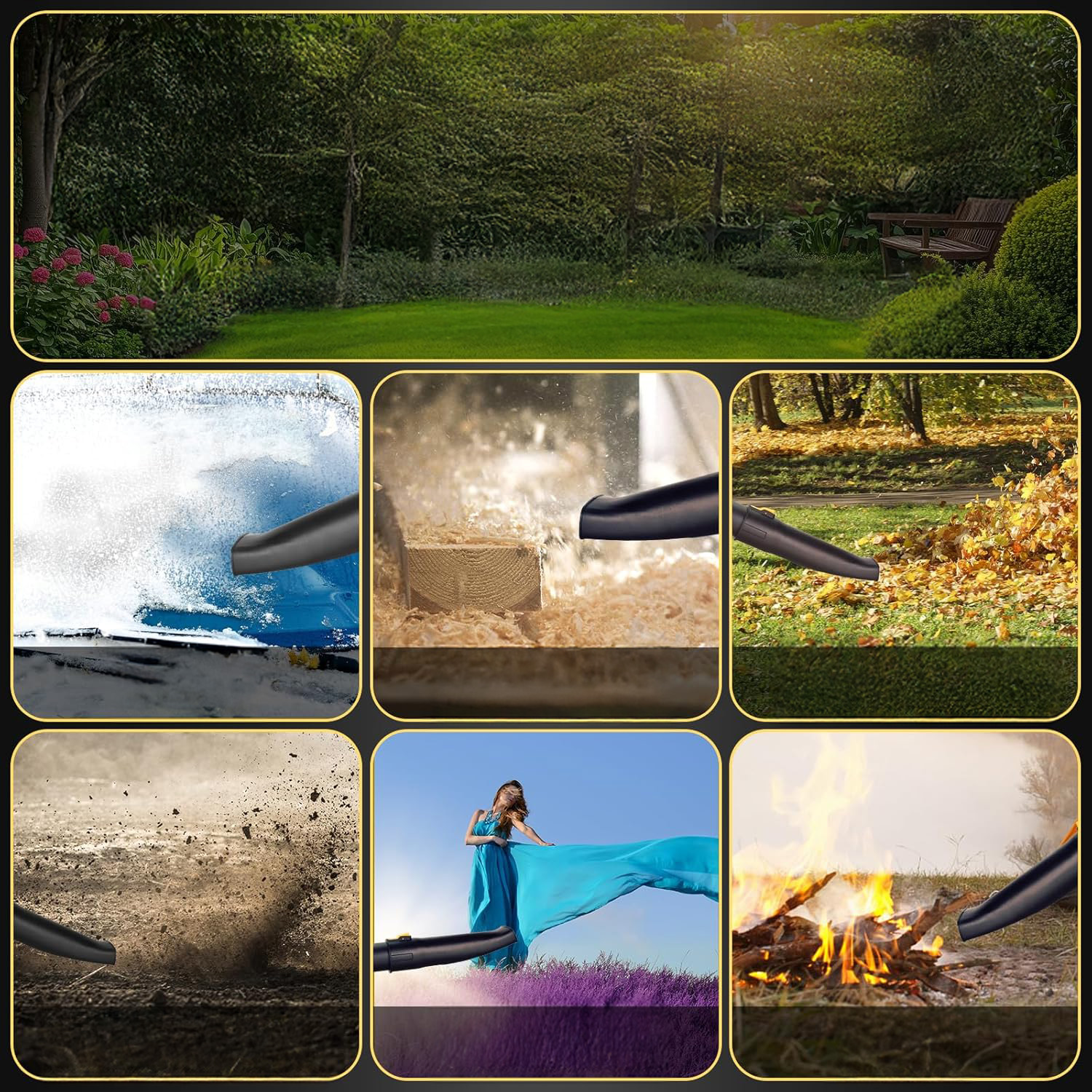✔ виробниться в потужному двигуні 400 Вт (макс. 20 000 об/хв), досягає максимальної швидкості 240 км/год і забезпечує повітря потужністю до 1400 м³/хв. Він має 6 регульованих швидкостей, що полегшує виконання різних легких та важких завдань.