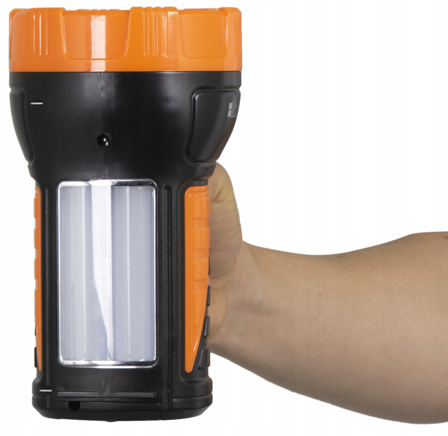 Прожектор із двома функціями, оснащений ефективним джерелом живлення від акумулятора, який не потребує заміни акумулятора. Вбудовані 4 акумулятори загальною потужністю6000mAh заряджається безпосередньо від розетки 230V. Ліхтарик можна використовувати не тільки як прожектор, але і як стоячий похідний світильник або лампу для читання.