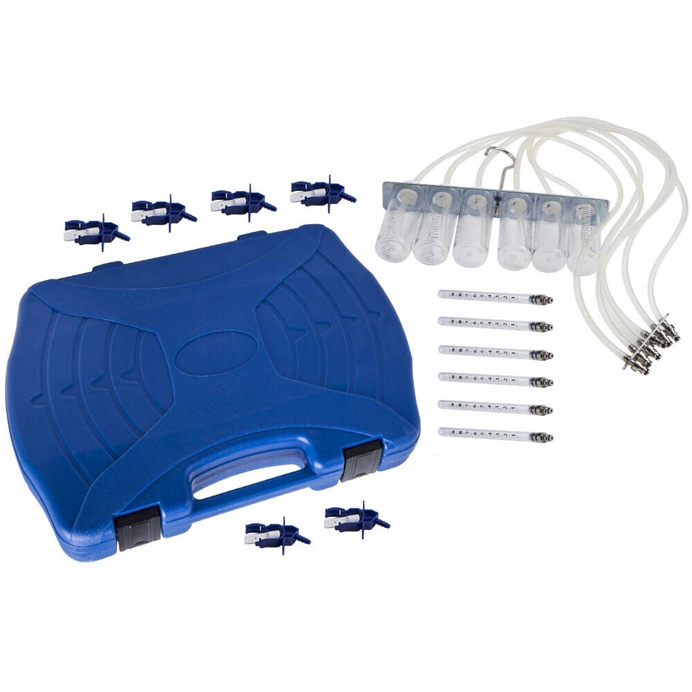 Прилад призначений для діагностики форсунок дизельних двигунів з кількістю циліндрів не більше 6, обладнаних системою подачі палива Common Rail. Це дозволяє легко та швидко діагностувати форсунки на основі вимірювання кількості палива, що випускається через перелив форсунки. Завдяки цьому ви можете легко виявити будь-які пошкодження, забруднення або течі в форсунках. Діагностика передбачає підключення тестерів або тест-смужки за допомогою відповідних адаптерів до переливних ліній форсунок і порівняння кількості палива, що подається окремими форсунками. Якщо будь-яка форсунка подає більшу або меншу кількість палива, вона несправна. Його можна використовувати при запуску двигуна або під час його роботи на 6 циліндрах одночасно.