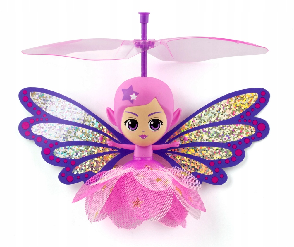 Чарівна фея створить чарівну атмосферу, піднявшись у повітря, як зачарована! Він має сітчасту спідницю, прикрашену блискучими зірками, пару красивих крил і рухомий пропелер. Натисніть кнопку на її потилиці, і фея злетить у повітря.