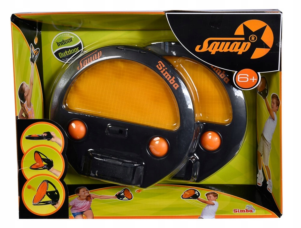 b> - чудова спортивна іграшка для дітей від 6 років. Гра передбачає вправне ловіння та кидання м'яча. Ми прикріплюємо Squap до руки за допомогою липучки, і він стає продовженням нашої руки. Гра - це не що інше, як ефективне відкриття та закриття рук. Кинутий м'яч потрапляє до суперника, який закриває руку і ловить його в свою лопатку. Ви також можете грати самостійно, відбиваючи м'яч об стіну. Ідеальним місцем для гри в сквоп є парки, сади, пляжі, спортивні майданчики та великі закриті простори.Вміст і особливості набору: