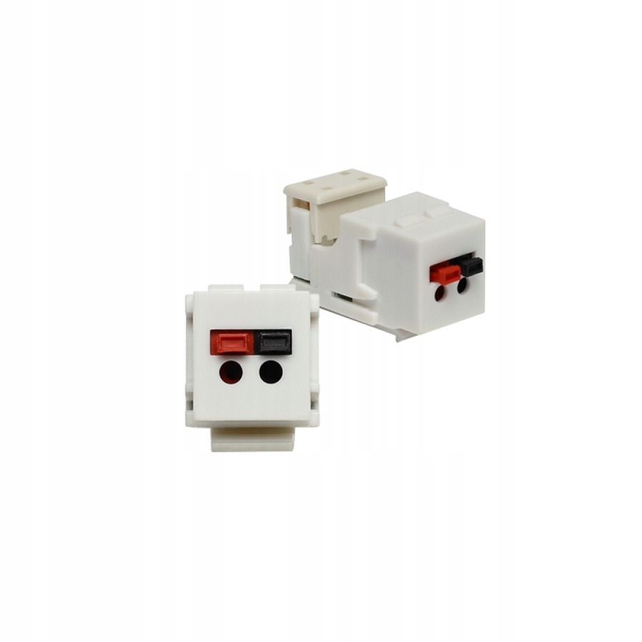Розетка складається з подвійної кришки для ІКТ-розеток на Keystone і двох модулів розеток гучномовців для установки в кришку. Зібрати все дуже просто і не вимагає використання додаткових інструментів. Просто помістіть модуль в кришку, поки не почуєте характерне «клацання». Збірка своїми силами.