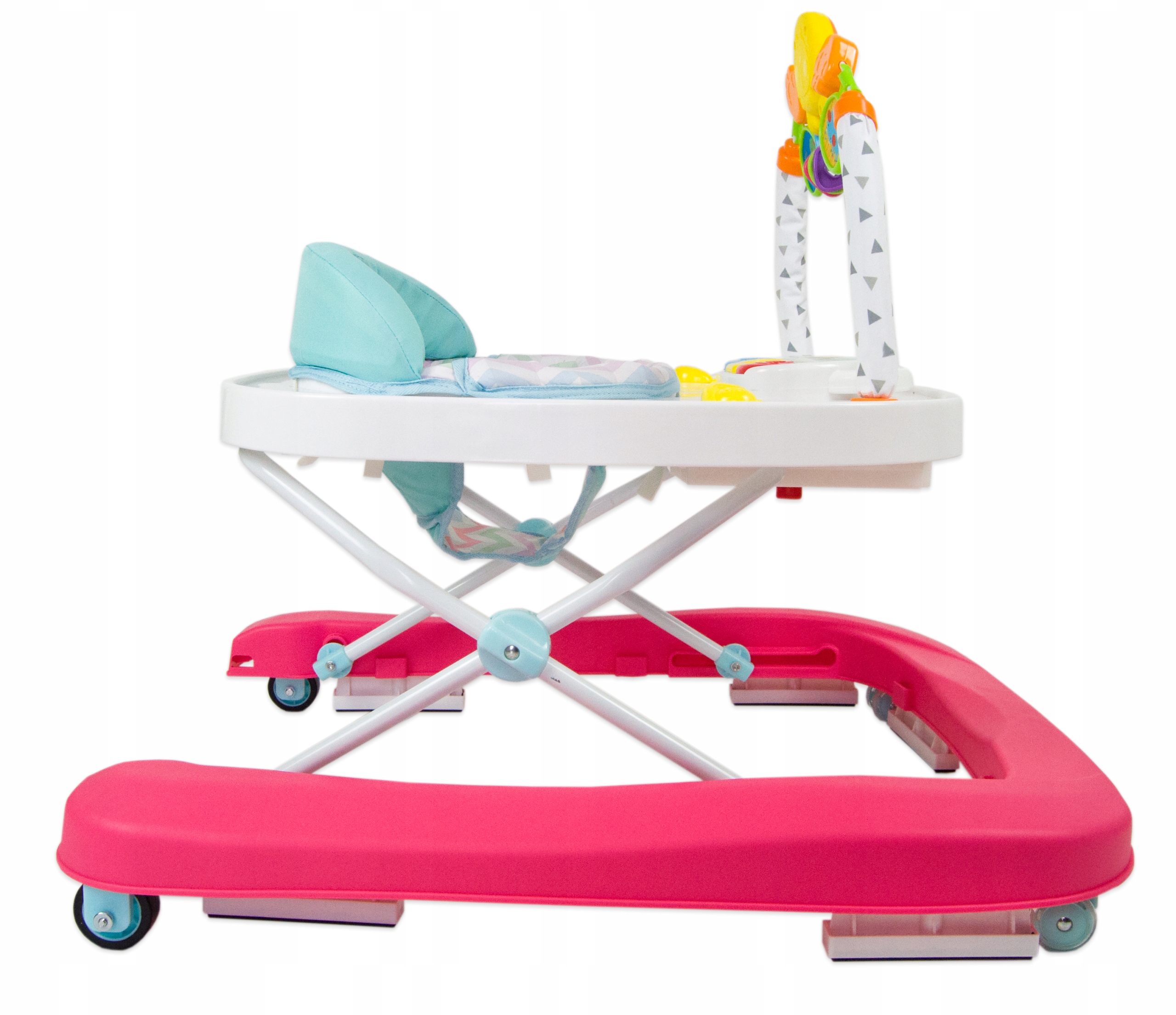 Ви можете легко перетворити наші ходунки на штовхач - знявши поперечину, задні колеса також мають фіксатор, завдяки якому ви можна регулювати швидкість ходунків відповідно до навичок дитини.