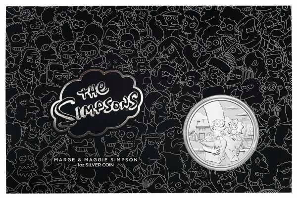 Мардж і Меггі походить із серії Сімпсонів і важить одну унцію. Монета викарбувана зі срібла 999 проби.