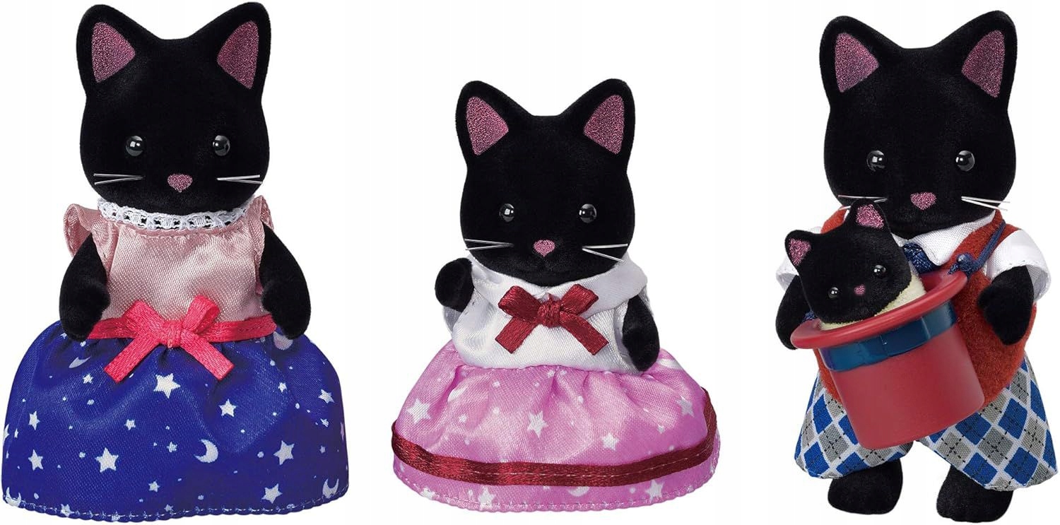 Сім'я чорних кошенятів силванських сімей є маленькими, чарівними статуетками тварин з м'яким хутром. Всі вони чорні і мають красиві рожеві вуха. Тато Джеймс - фокусник і вражає жителів Сільванського села магічними трюками. Мама Еллісон - фея. Усі в Сільванському селі хочуть, щоб вона передбачила своє майбутнє. Дочка Шантелла атлетична і любить грати в баскетбол, але коли вона виростає, вона хоче стати фокусником, як її тато. Маленький Реджі цікавий і змушує інших сміятися з його питань. Фігурки з сімейного набору Чорного Коткова можна поєднувати з іншими наборами, будинками та транспортними засобами силванічними сім'ями. Сільванські іграшки сімей відрізняються найвищою якістю та любов'ю до деталей. Фігурки мають рухомі головки, ручки та ноги. Ми рекомендуємо дітям від 3 років.