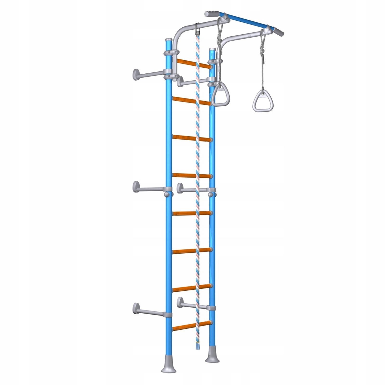 Багатофункціональний набір для гри, альпінізму та фізичних вправ Сім'я Wallbarz - це сучасний спортивний комплекс, розроблений для різних дітей дітей, а також молодих людей та дорослих. Це ідеальний та ефективний спосіб донести дитину до фізичних навантажень, перебуваючи вдома. Ви також повинні бути моделлю для своєї дитини та фізичними вправами для мобілізації та мотивації до ще більшої активності . Сходи Wallbarz оснащені регульованим стрижнем, висоту якого можна змінити, коли дитина росте. Завдяки цьому, вправи зручніші, пристосовані до віку та розвитку дитини, і, таким чином, безпечні. Великою перевагою цього набору є той факт, що він не займає багато місця в кімнаті (всього 0,5 м2!), Так що його можна встановити майже в кожній квартирі. Набір прикріплений до стіни або розширення між підлогою та стелею.