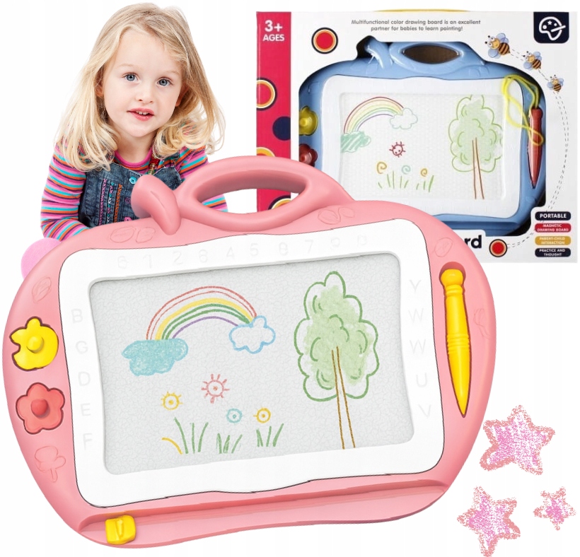 Дошка має зручну ручку, тому дитина може брати її куди завгодно. Упаковка розміри: 33 х 26 х 2,5 см☑️ 2 кольори: синій і рожевий -Колір виберіть у примітках до продавця. Без інформації про вибір товар відправляється випадковим чином.