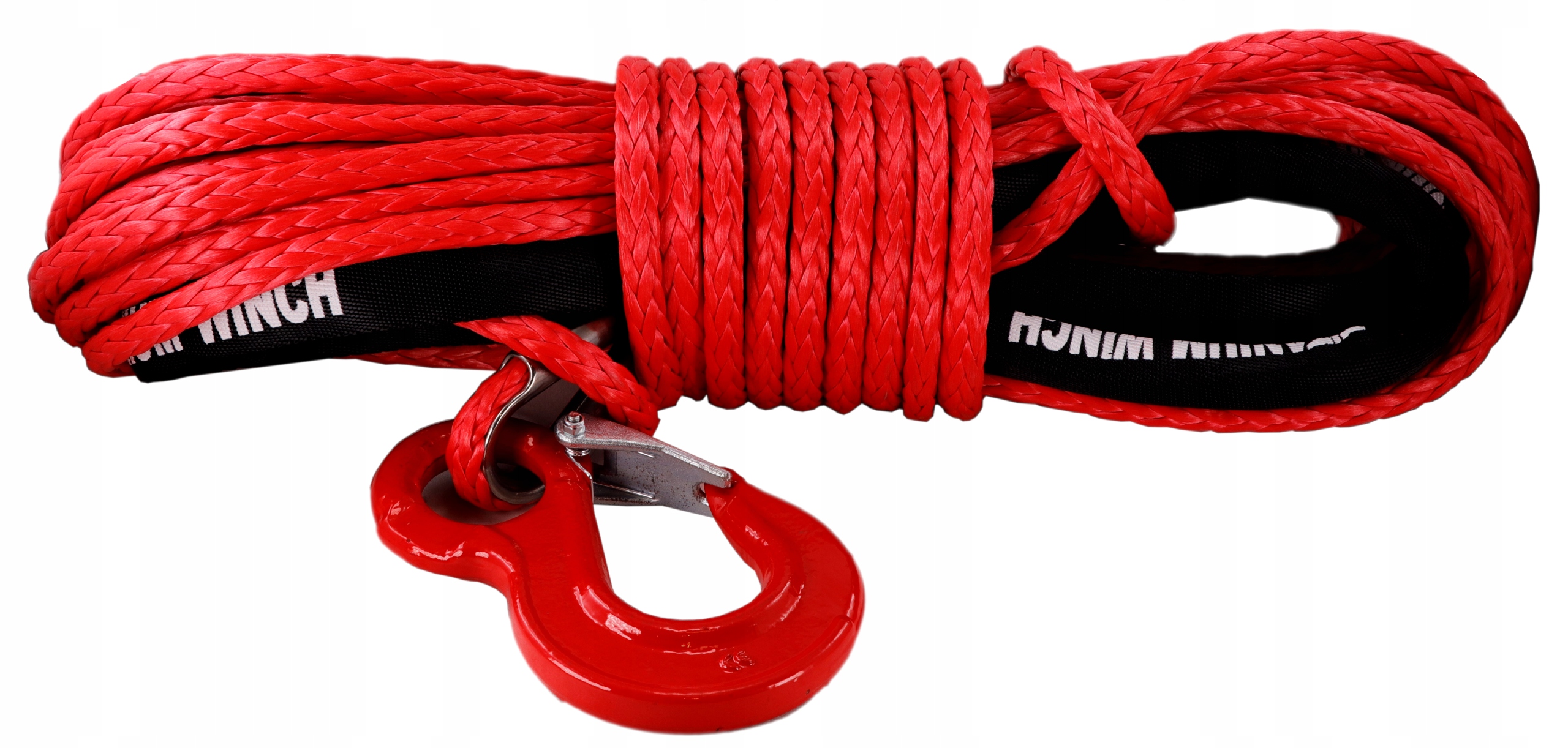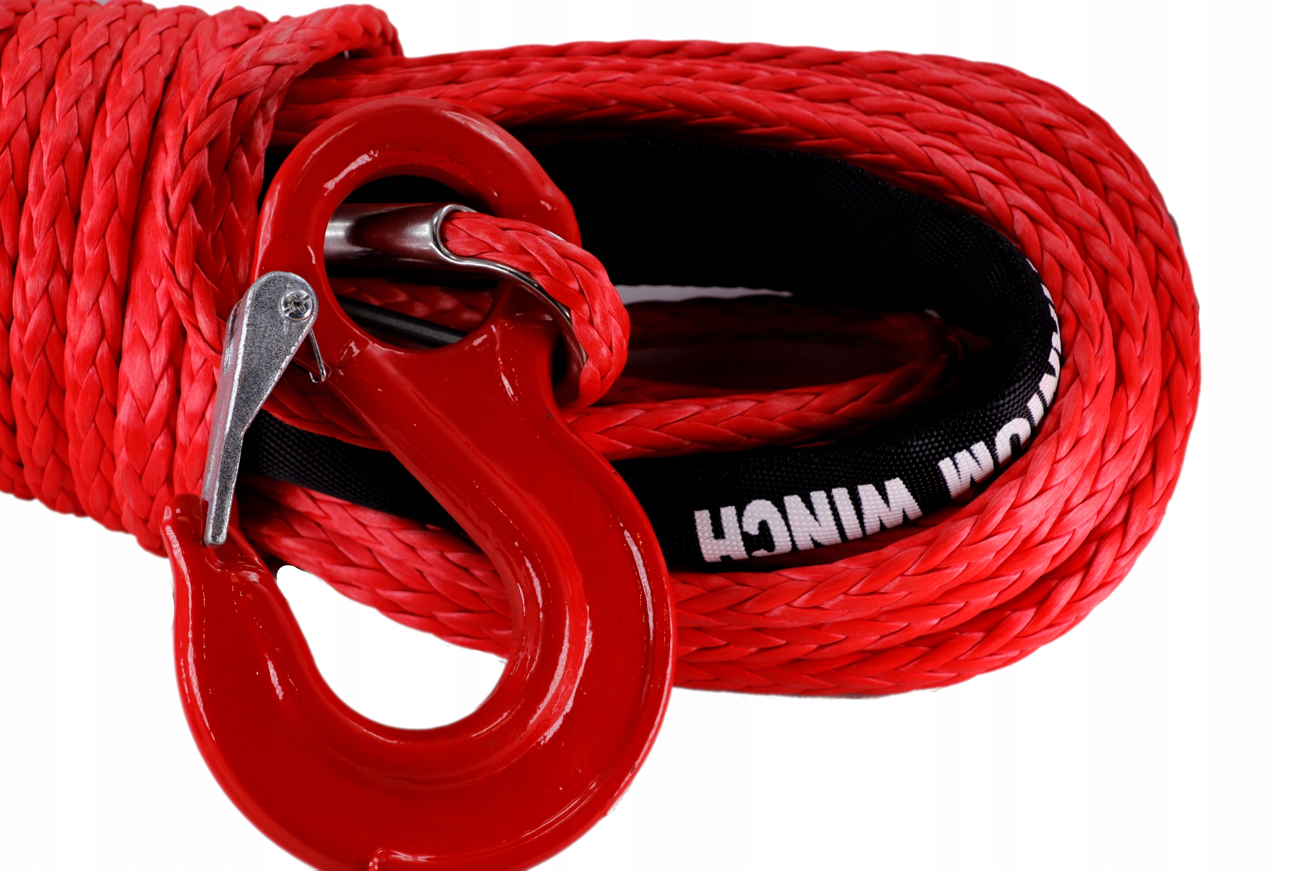 Універсальний синтетичний трос довжиною 28 метрів і діаметром 12 мм підходить для будь-якої лебідки. Протягом багатьох років в електричних лебідках замість сталевого канату використовується синтетичний трос. На кінці каната є кожух і гак, а з іншого боку є вушко для кріплення до барабана лебідки. Синтетична мотузка характеризується надзвичайно високим співвідношенням міцності волокна до ваги, високою стійкістю до стирання та низьким вологопоглинанням. Мотузка м'яка, що полегшує змотування.