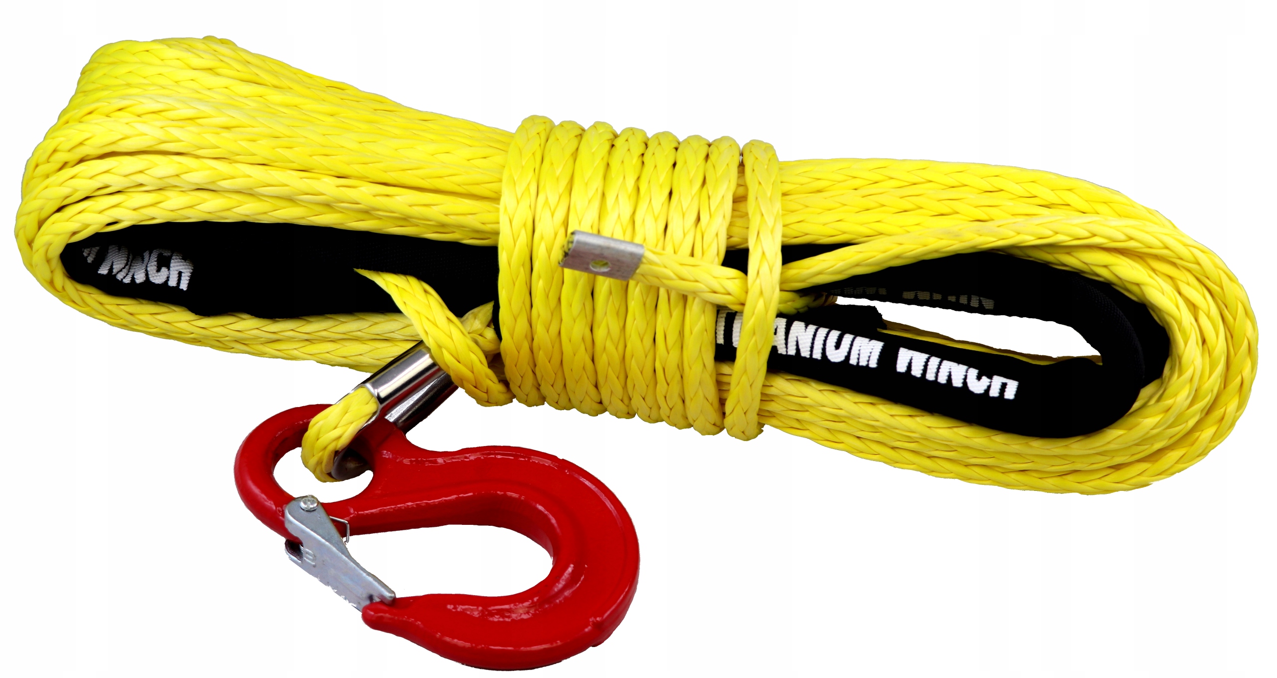 Універсальний синтетичний трос довжиною 28 метрів і діаметром 10 мм підходить для будь-якої лебідки. Протягом багатьох років в електричних лебідках замість сталевого канату використовується синтетичний трос. На кінці каната є кожух і гак, а з іншого боку є вушко для кріплення до барабана лебідки. Синтетична мотузка характеризується надзвичайно високим співвідношенням міцності волокна до ваги, високою стійкістю до стирання та низьким вологопоглинанням. Мотузка м'яка, що полегшує змотування.
