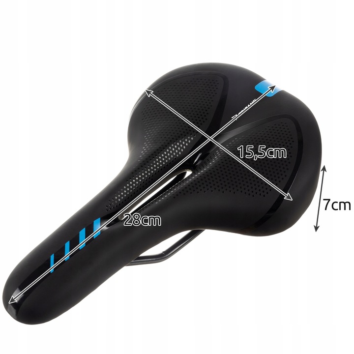 Сідло виготовлено зі зручного та м'якого поролону. Таке рішення забезпечить комфорт водіння, а рельєфна форма забезпечить комфорт. Цеособливо важливо під час тривалих поїздок або поїздок. Повне сидіння також допомагає підтримувати правильну поставу на велосипеді!
