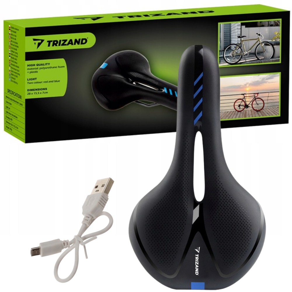 SIODEŁKO ROWEROWE WYGODNE MIĘKKIE SIODŁO SPORTOWE + LAMPKA USB
