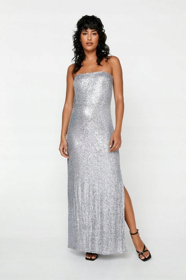 СІРА БЛИСКУЧА ПРЯМА СУКНЯ МАКСІ З ПАЙЄТКАМИ, З ОТКРИТИМИ ПЛЕЧАМИ, NASTY GAL 40