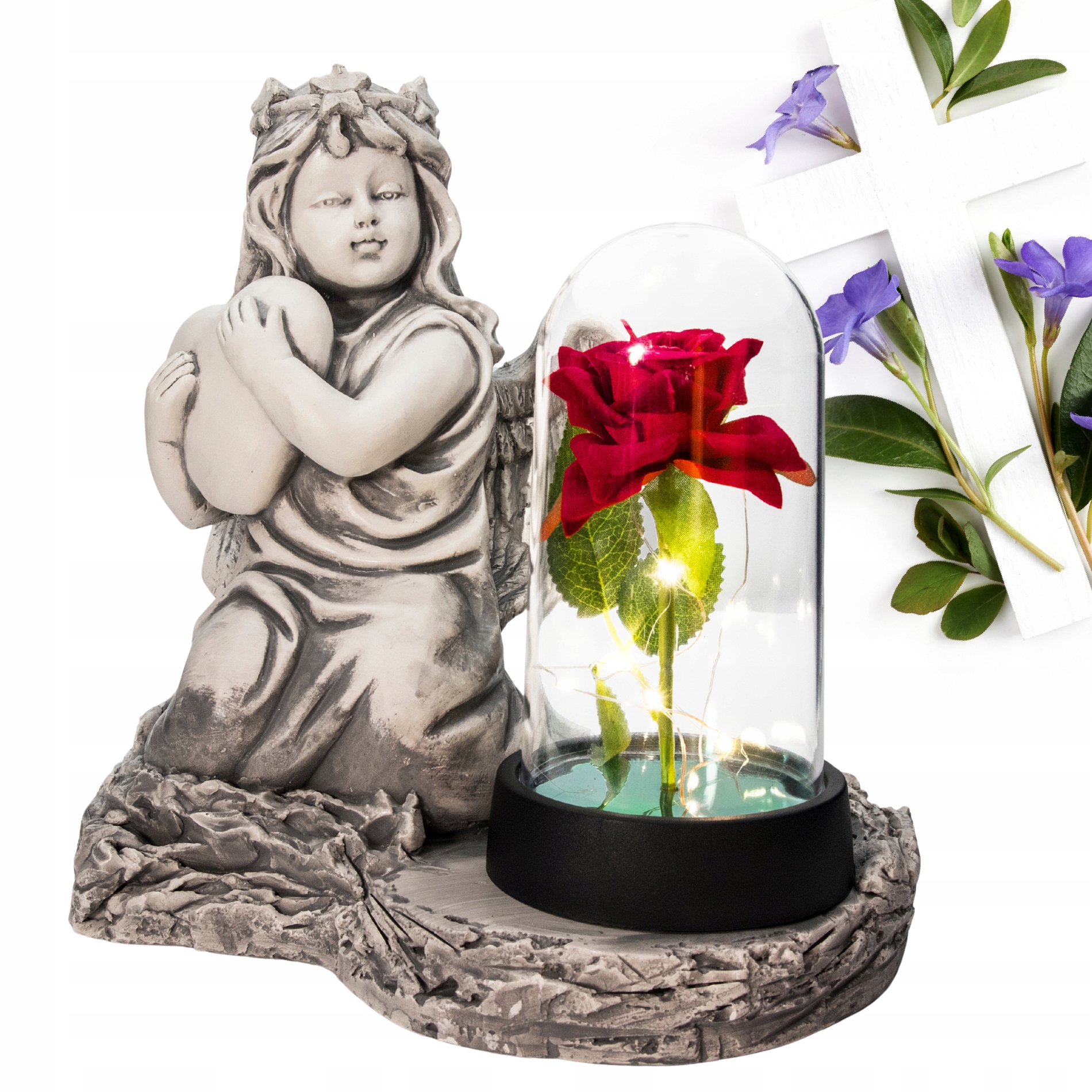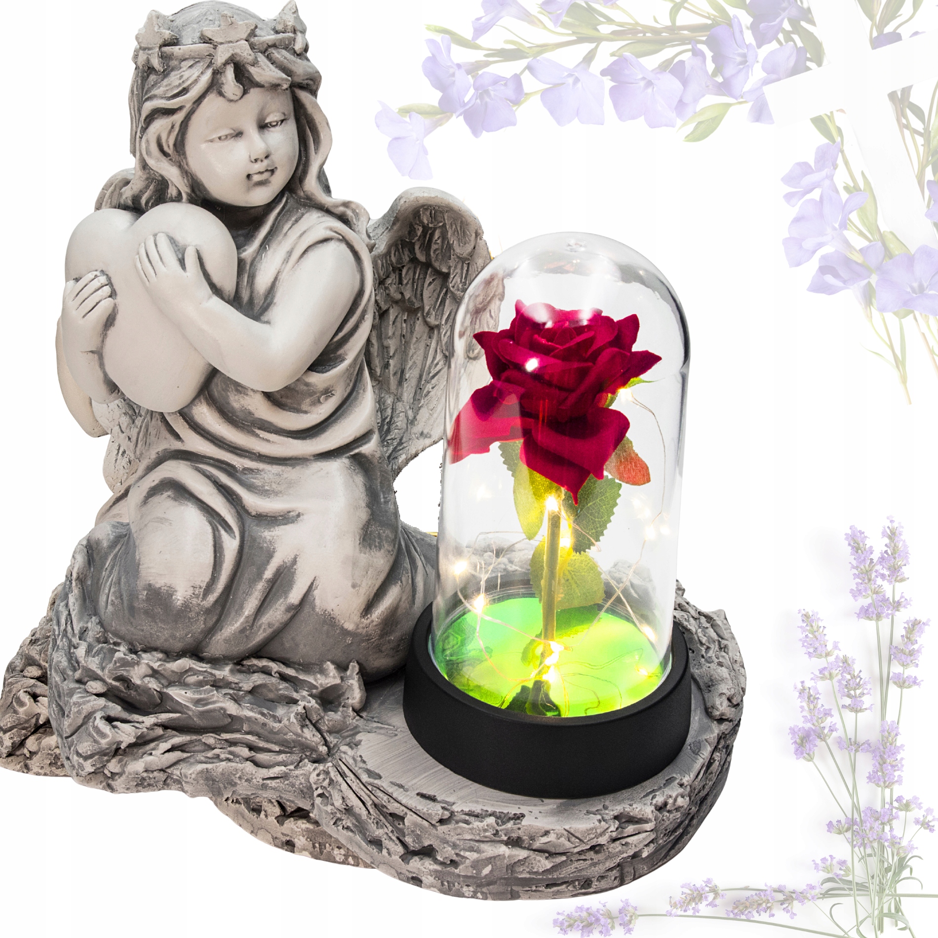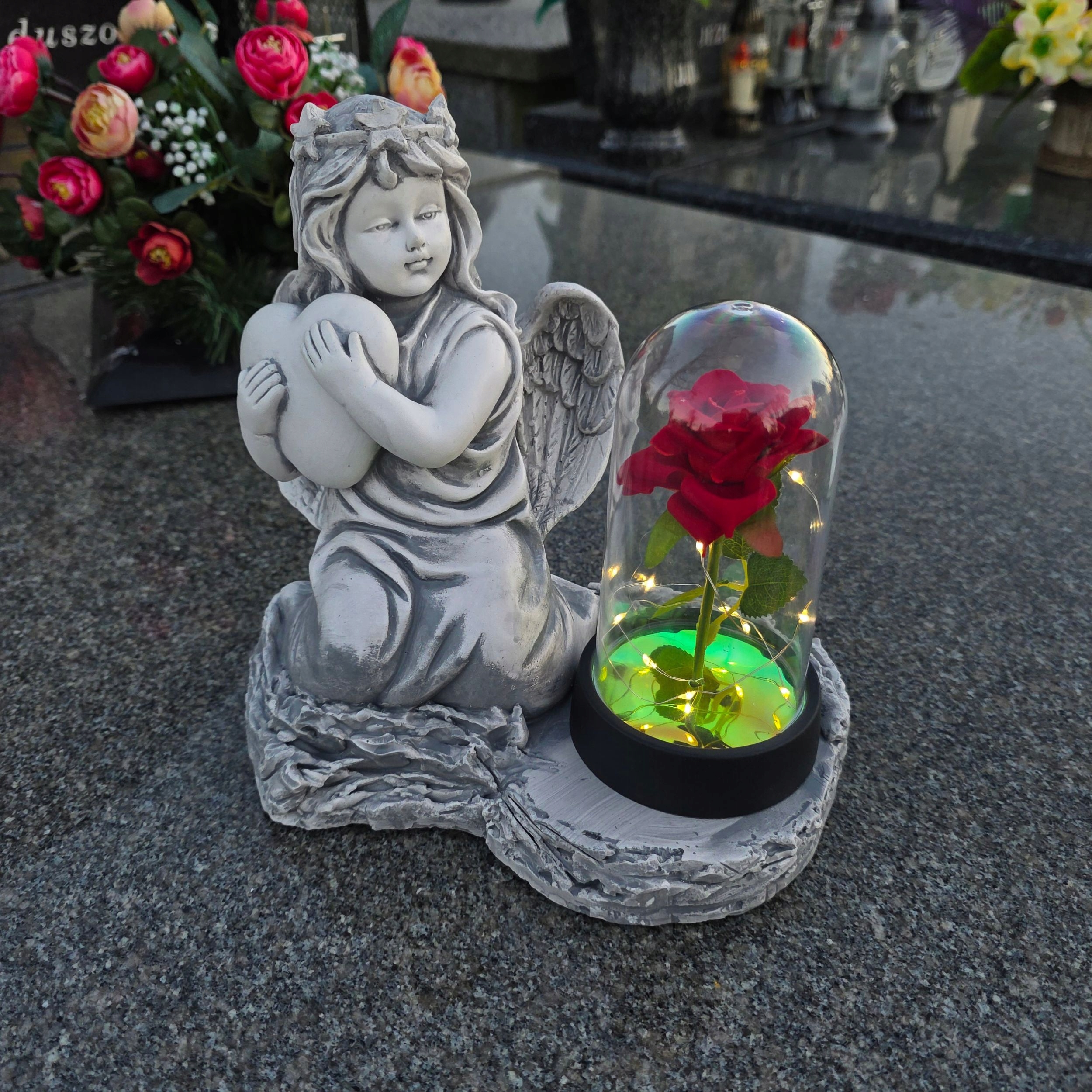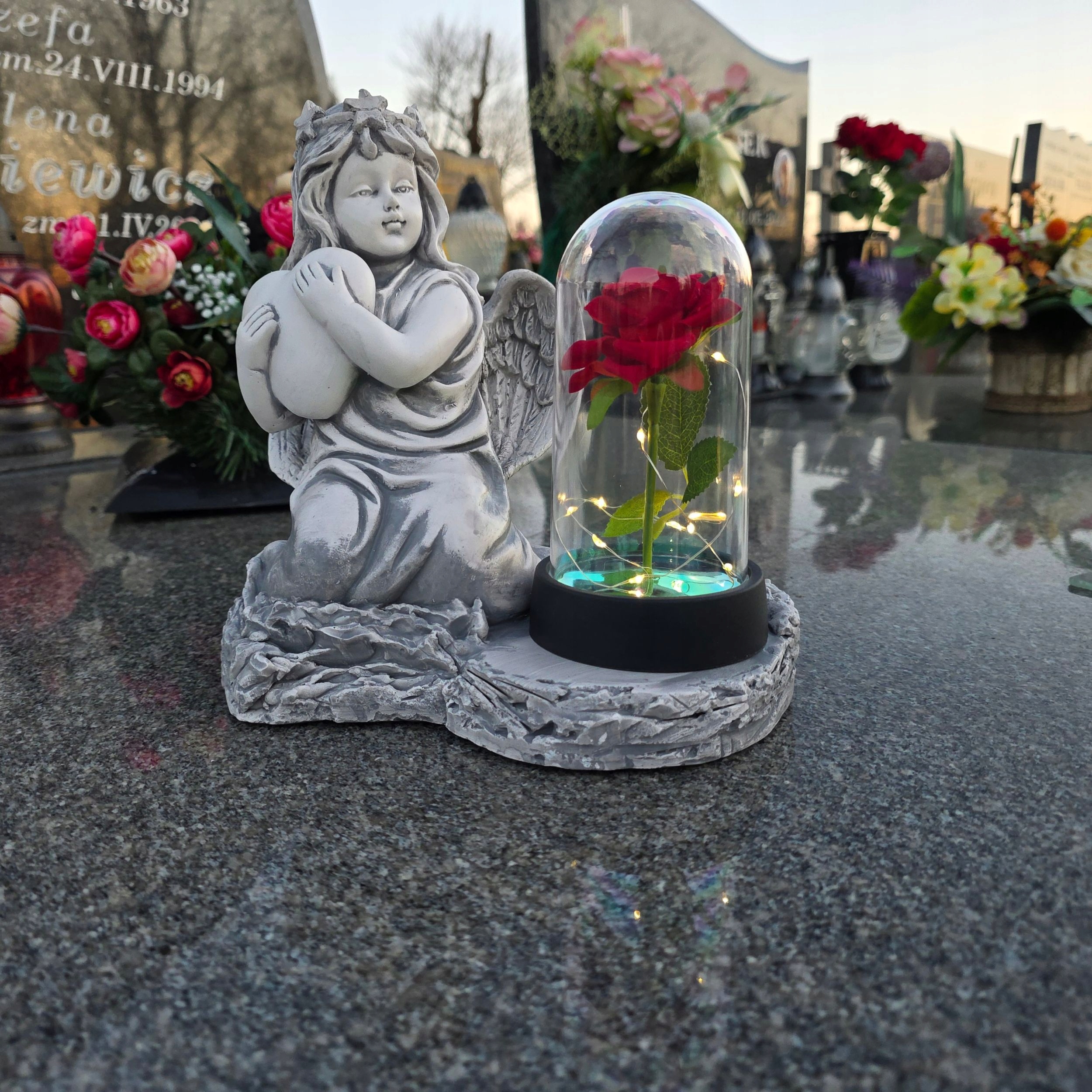 ➡️ Фігурка та лампа з трояндою об’єднані в одне ціле, створюючи прикрасу надгробка, готову до встановлення.