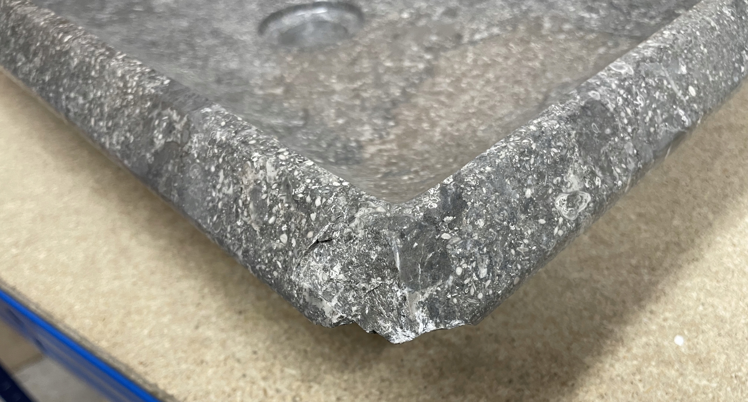 Продукт з дефектом, обережно кричав один із кутів раковини, фотографії в самому дні.