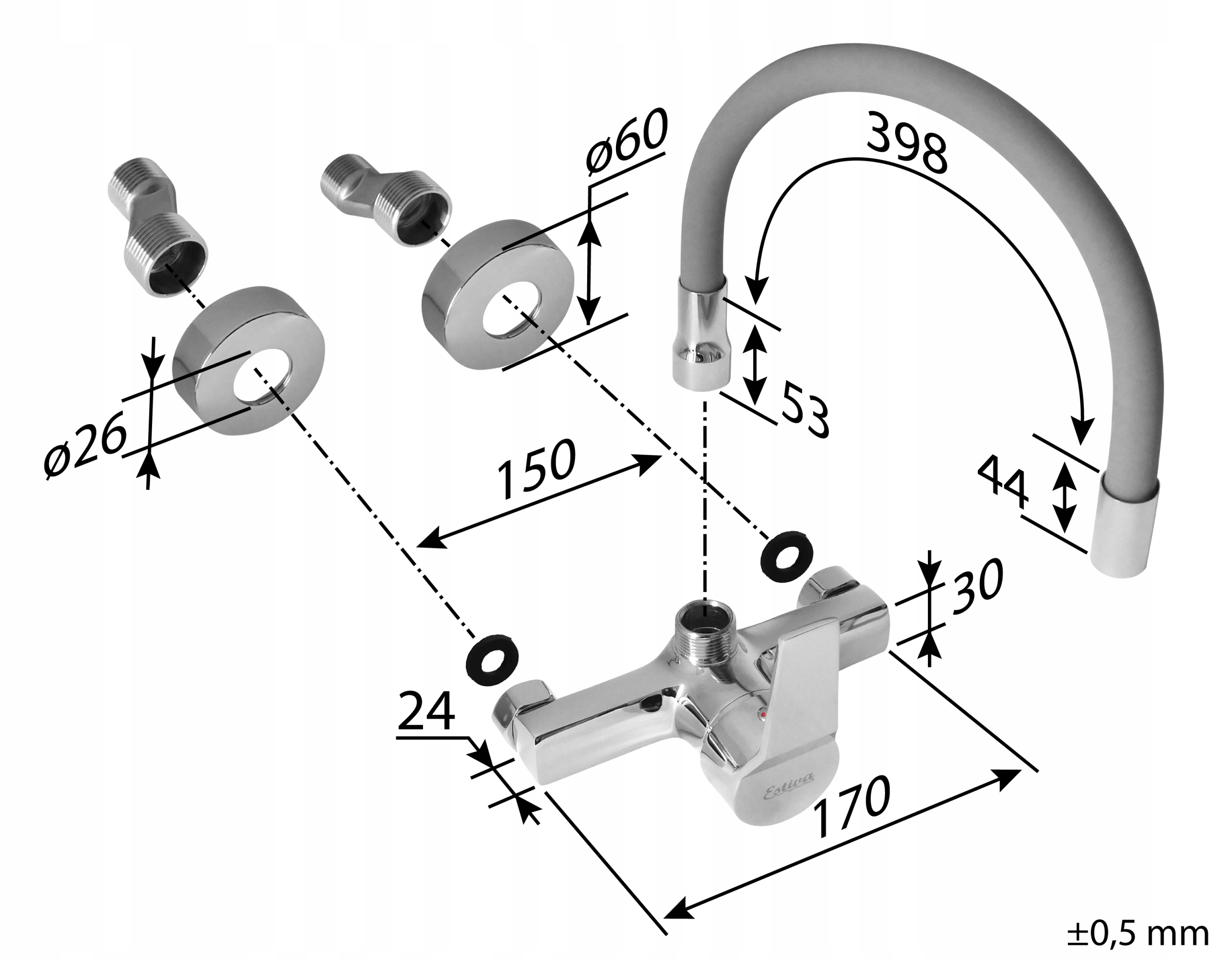 Сіра настінна кухонна змішувач гнучка ротаційна раковина Estiva Estiva