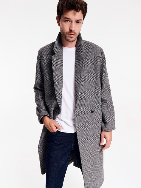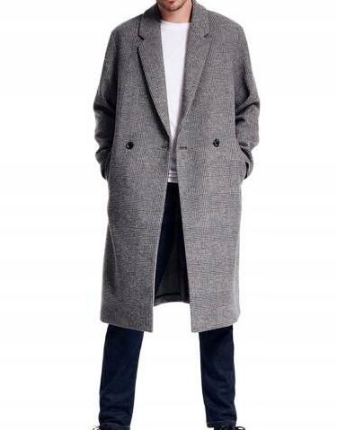 Сірий класичний довгий пальто для малюнкової кнопки з домішкою XL WOOD