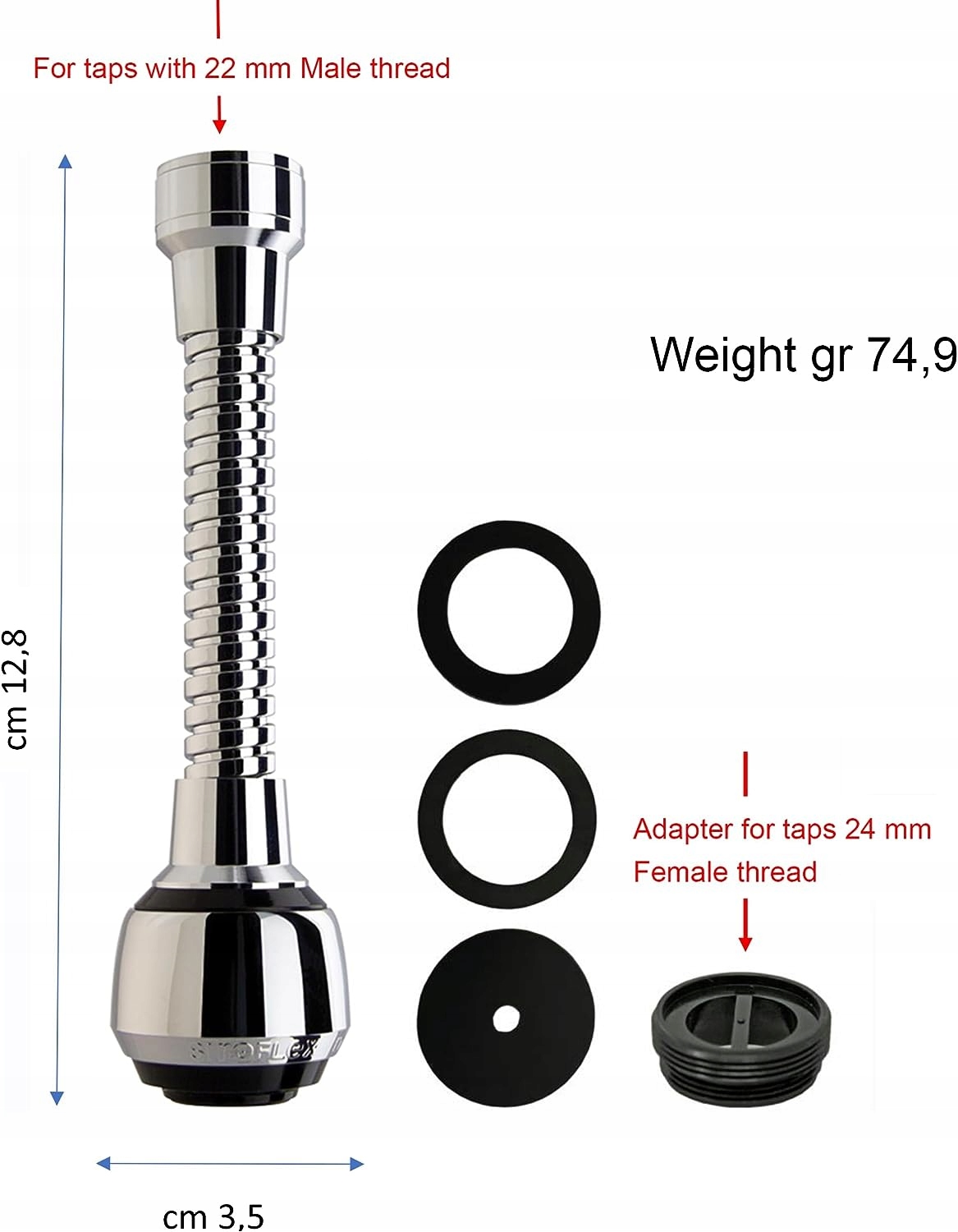 РЕГУЛЯТОР КУХОННОЇ МИЙКИ: Для кранів зі стандартним підключенням GZ 22 мм, GW 24 мм. З аератором Siroflex Milady оновіть свій змішувач, поєднавши його з ручним душем. Гнучкий шланг дозволяє струменю вільно обертатися та полегшує миття раковини та об’ємного посуду.