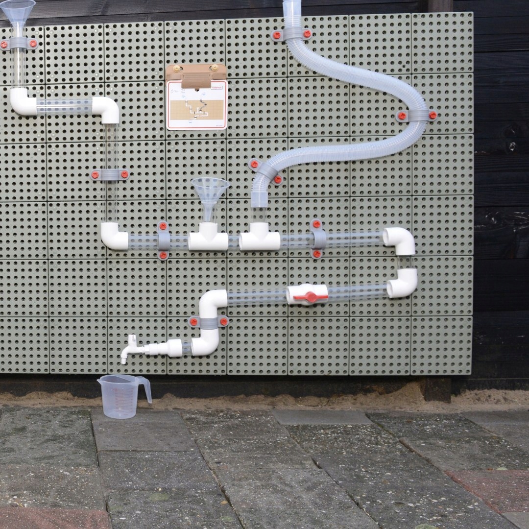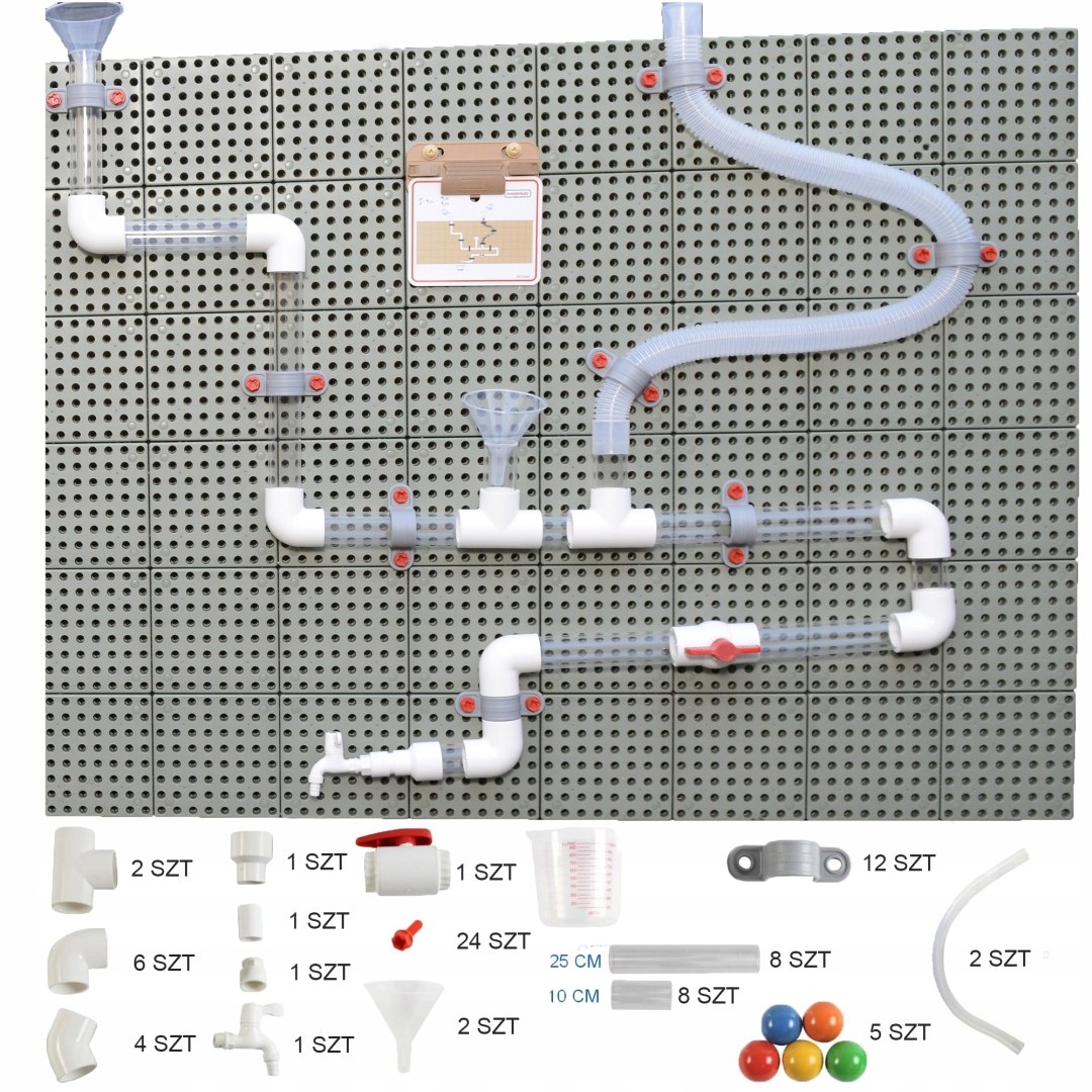 Ви можете придбати водяний насос, який зробить гру ще цікавішою. Труби можна проходити водою, виливши її в воронки, використовуючи глечики, прикріплені до набору, але ви також можете побачити, як падають дерев'яні кульки, кидаючи всередину. Ви можете побудувати одну величезну систему труб або кілька менших, щоб кілька дітей могли одночасно розважитися. Дивовижна іграшка Masterkidz, яка використовується для побудови гідравлічної системи. Набір містить 80 елементів, включаючи :
