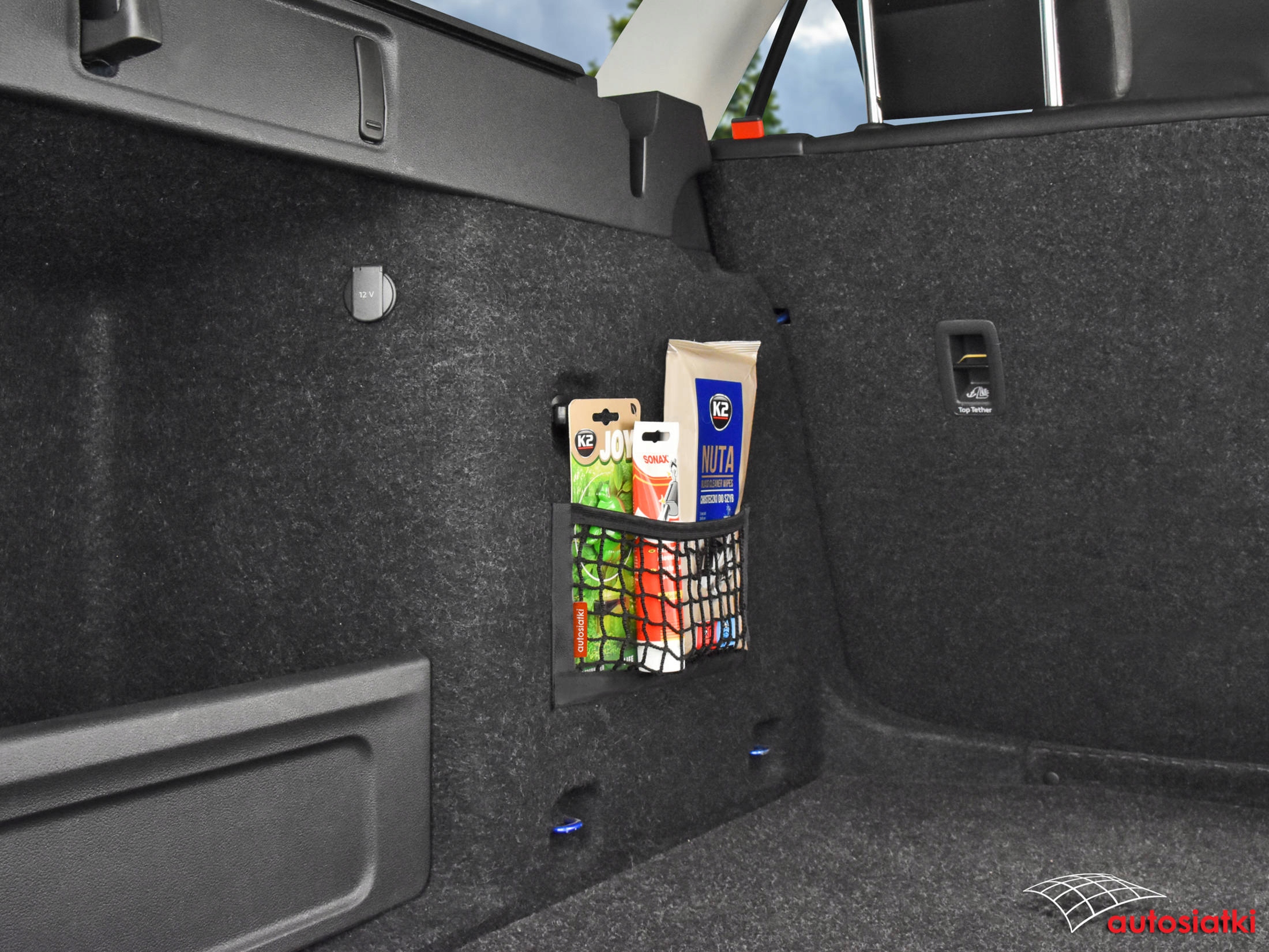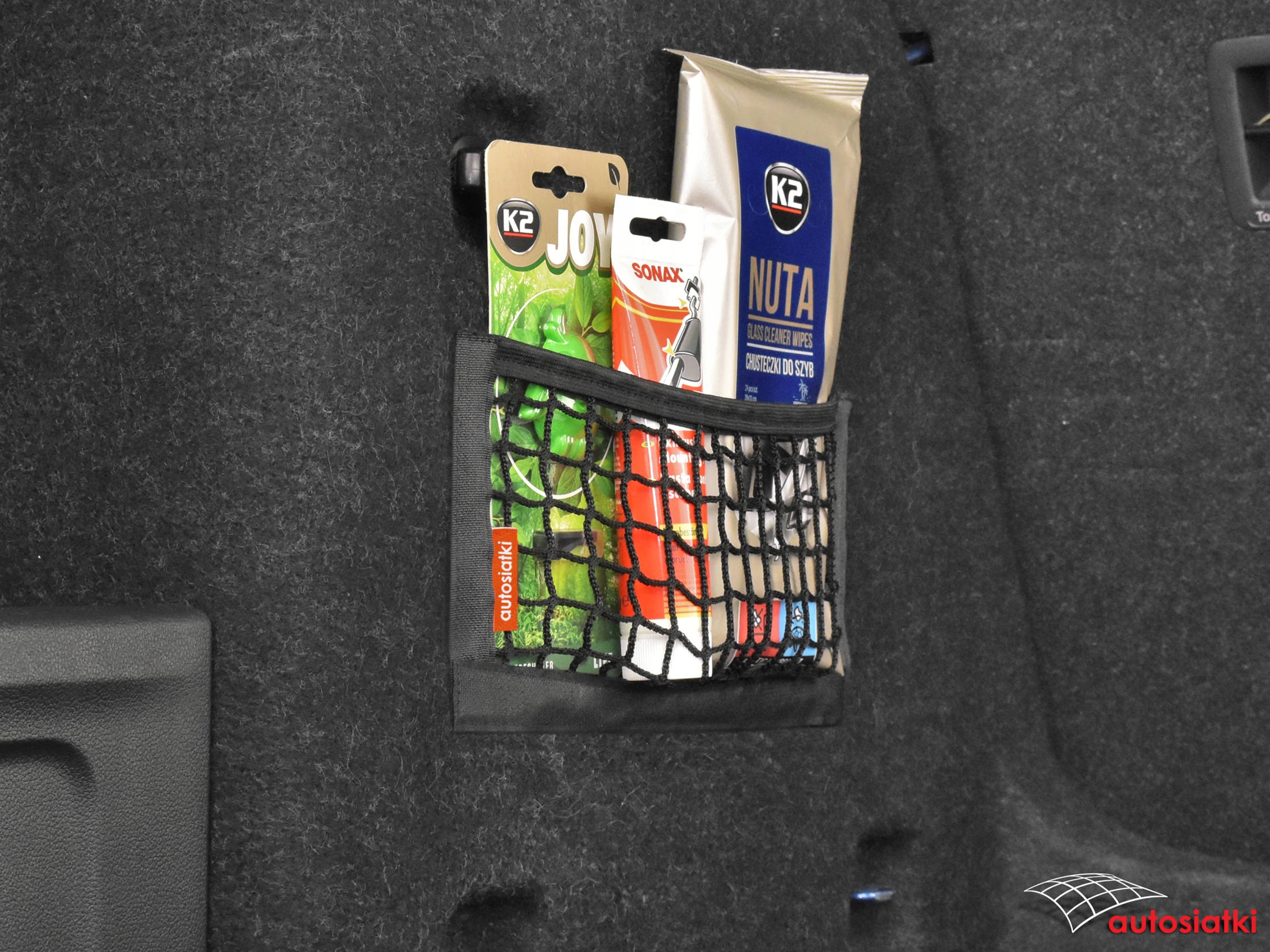 Це міцна сітка, покрита липучкою знизу та з боків. Зверху покрито гумою, яка фіксує та захищає аксесуари від переміщення. Кишеня кріпиться до килимка в багажнику або салоні автомобіля.