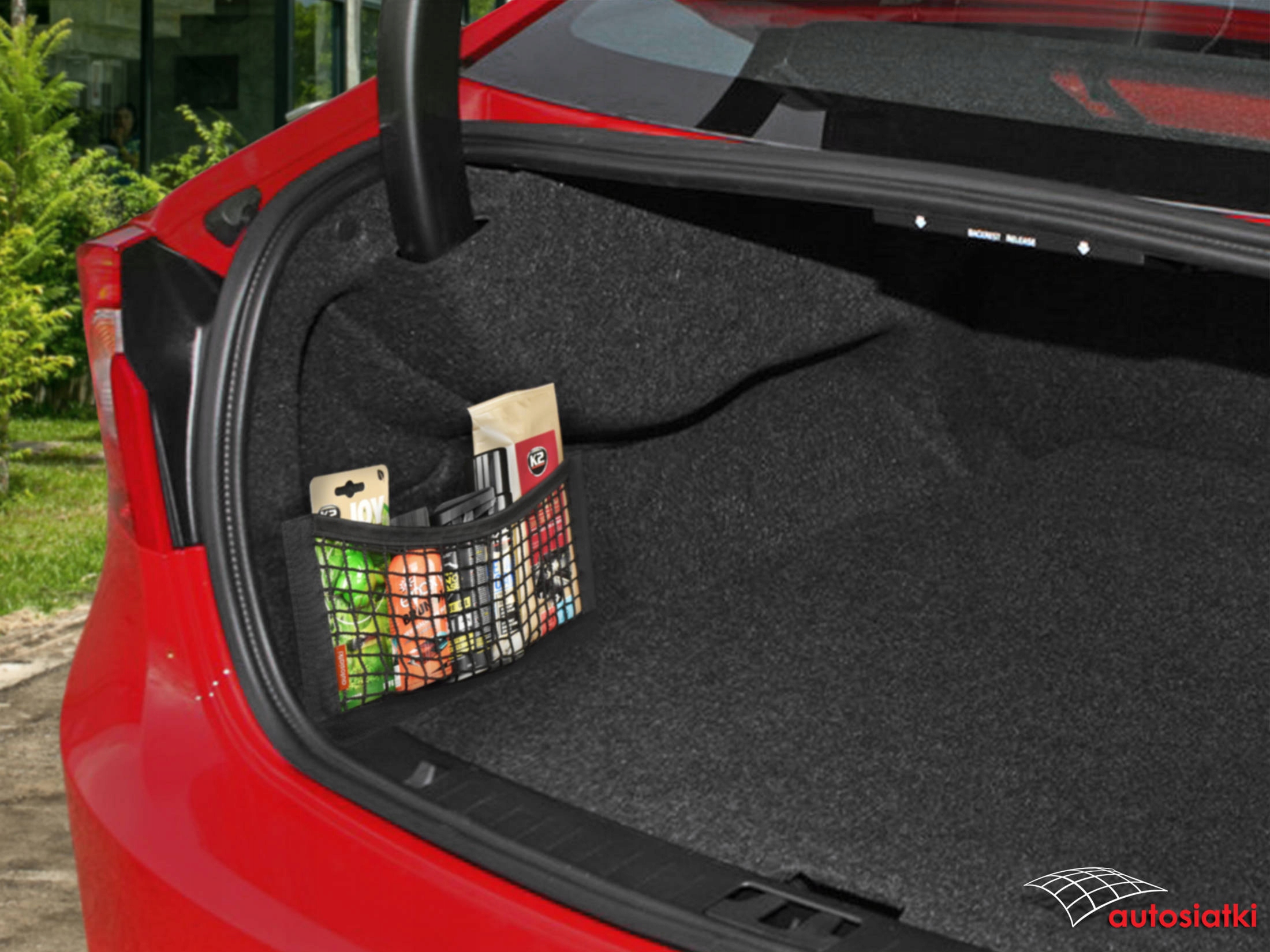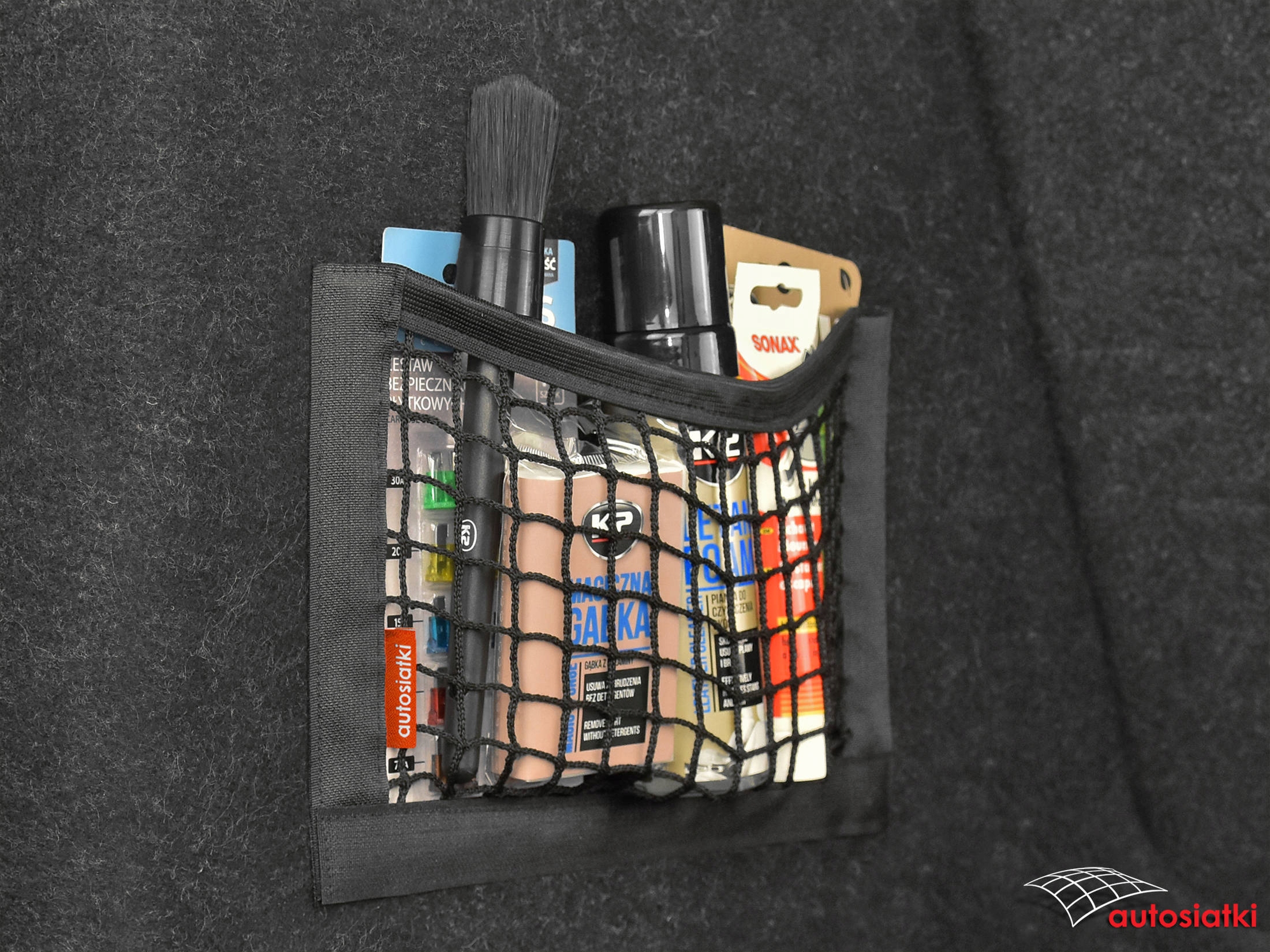 Це міцна сітка, покрита липучкою знизу та з боків. Зверху покрито гумою, яка фіксує та захищає аксесуари від переміщення. Кишеня кріпиться до килимка в багажнику або салоні автомобіля.