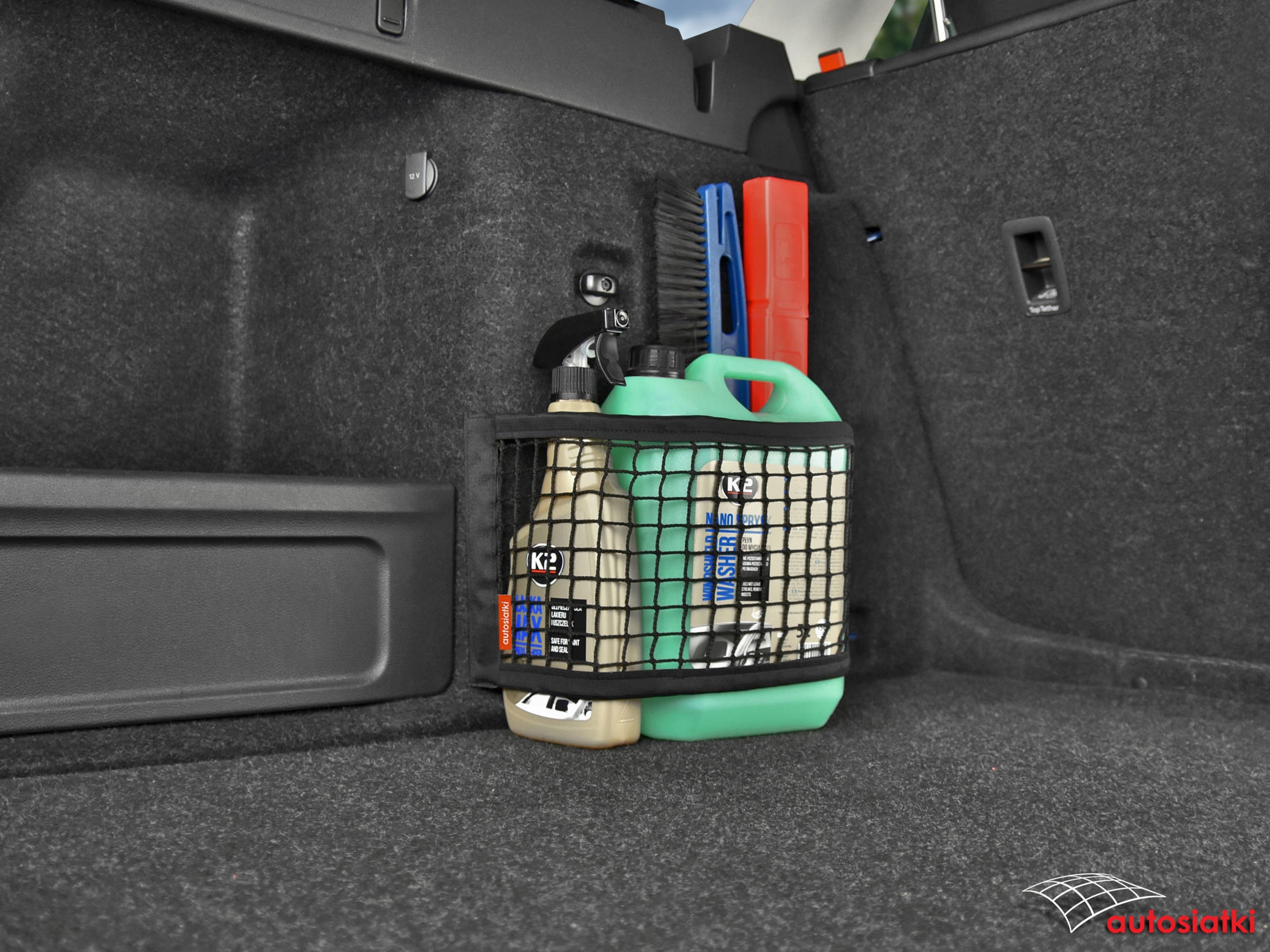 Це міцна сітка з липучками з боків. Оздоблення гнучкою гумою зверху та знизу, що дозволяє регулювати сітку відповідно до предметів, що транспортуються. Огорожа кріпиться до килимка в багажнику або салоні автомобіля.