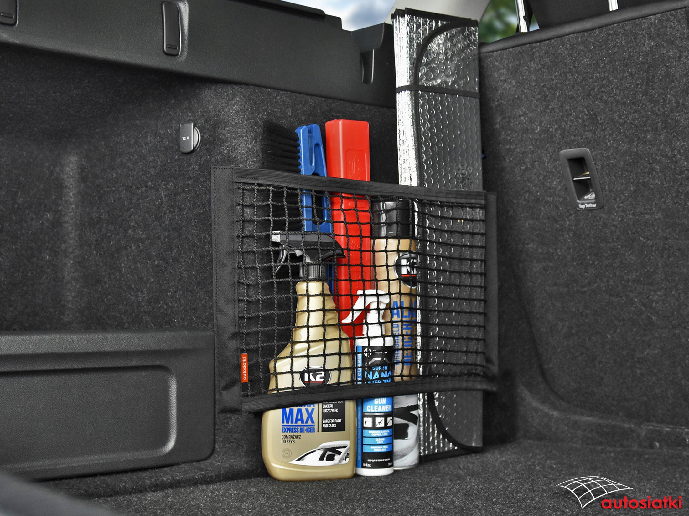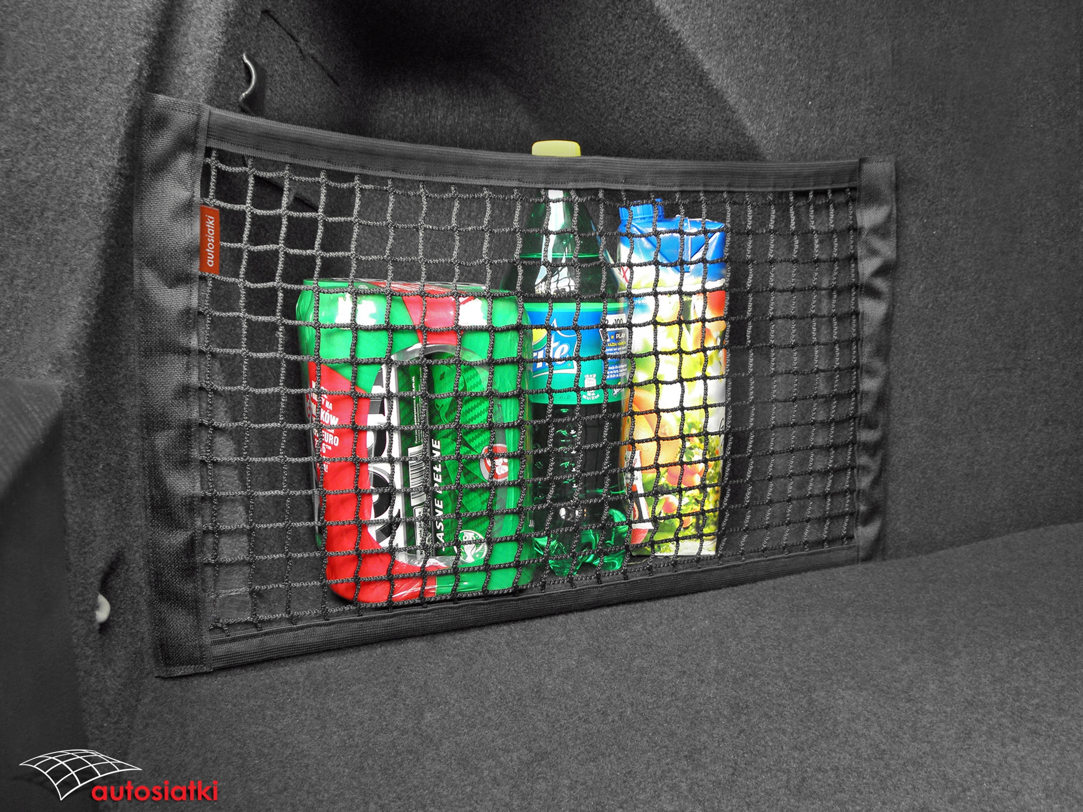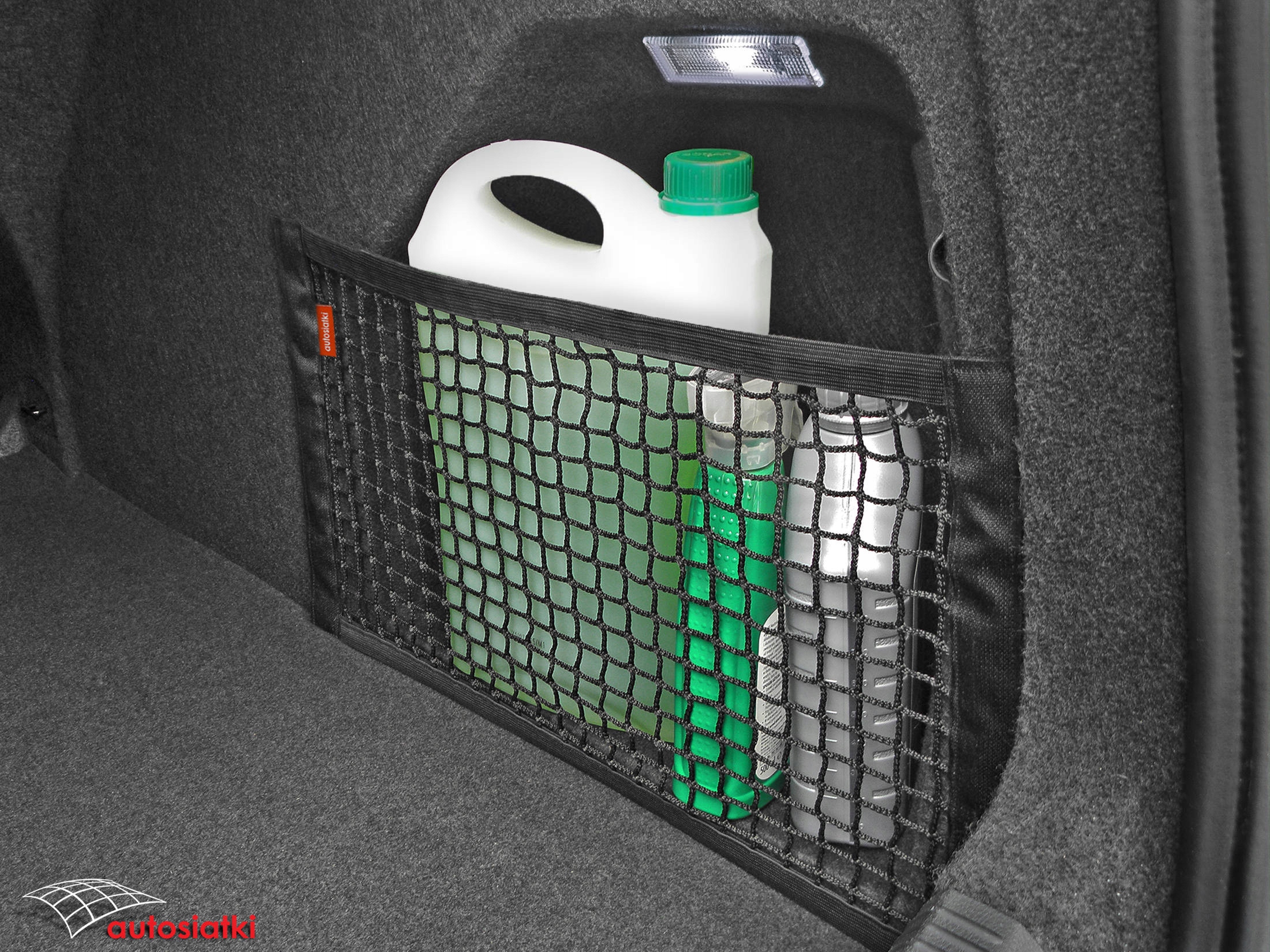 Це міцна сітка з липучками з боків. Оздоблення гнучкою гумою зверху та знизу, що дозволяє регулювати сітку відповідно до предметів, що транспортуються. Огорожа кріпиться до килимка в багажнику або салоні автомобіля.