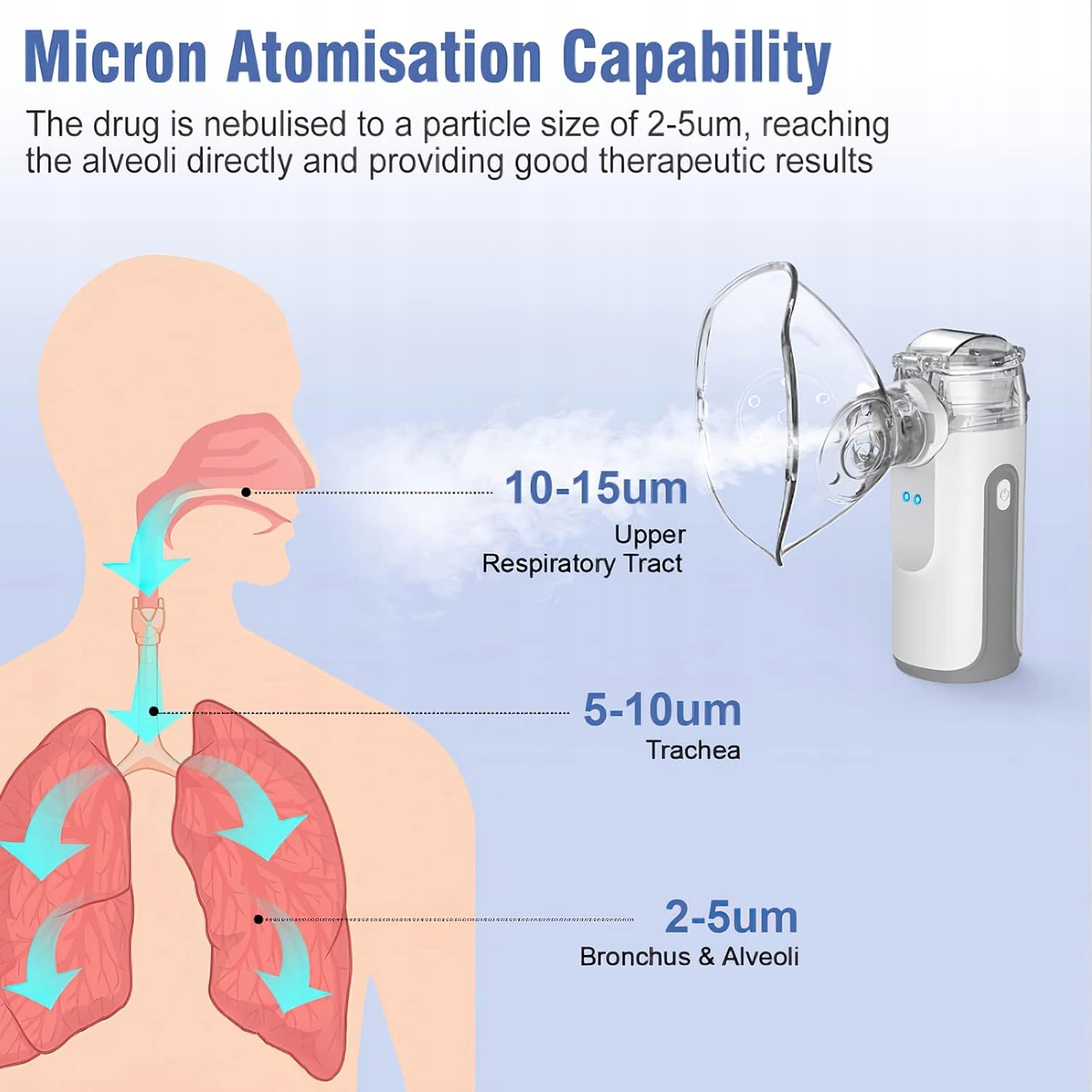 небулайзер My-132 для інгаляції, 2-3 мкм, USB/ батареї, тихий ≤25 дБ