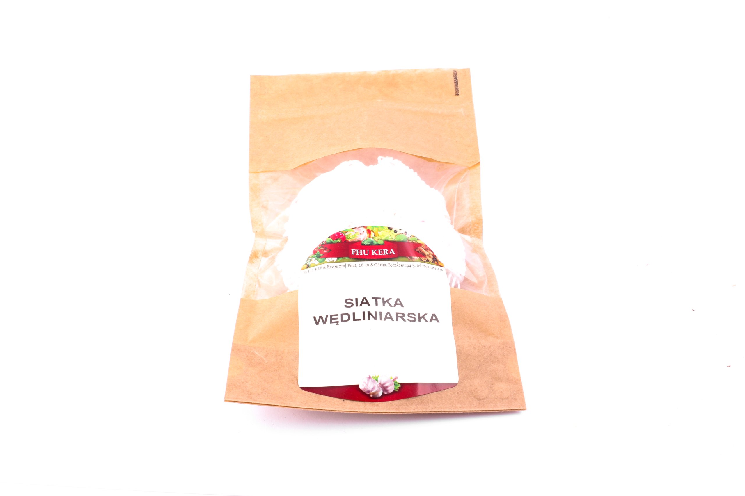 Сітка біла м'ясна для шинки, діаметр 150 мм. Сітка міцна і розтягується на максимальну ширину 15 см. Завдяки гнучкості сітки немає проблем із закладенням у неї м’яса та подальшим його вилученням із готового продукту.