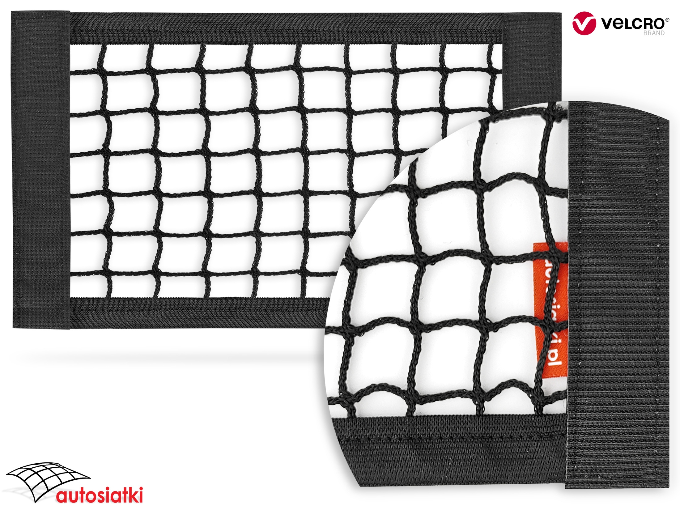 Це міцна сітка, оздоблена з боків міцною стрічкою Velcro від відомого VELCRO ® компанії. Оздоблення гнучкою гумою зверху та знизу, що дозволяє регулювати сітку відповідно до предметів, що транспортуються. Огорожа кріпиться на килимок в багажнику або салоні автомобіля. Використання стрічки VELCRO ® гарантує якісне та надійне кріплення автомобільної сітки.