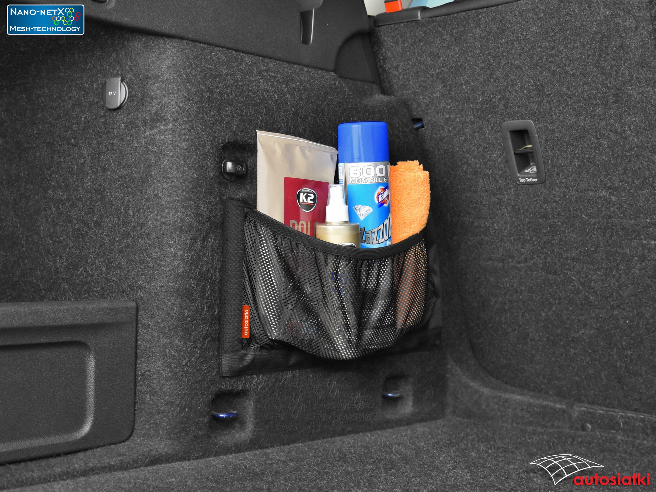 Це міцна сітка Nano-NetX, оброблена знизу та з боків міцним Стрічка Velcro b> від відомої компанії VELCRO ®. Зверху покрито гумою, яка фіксує та захищає аксесуари від переміщення. Матеріал Mesh-Technology захищає навіть дрібні предмети від випадання. Кишеня кріпиться на килимок в багажнику або салоні автомобіля. Використання стрічки VELCRO ® гарантує якість і надійність кріплення автомобільної сітки.