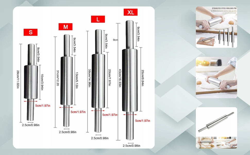 Про цей продукт Гладка та важка поверхня з нержавіючої сталі без зусиль притискає тісто, не прилипаючи. Легко чистити, міцний у використанні, не хвилюйтеся про те, що він зламається. Виготовлений з харчової нержавіючої сталі, антипригарний, гладкий і міцний. Нержавіюча сталь НЕ тріскається, не розколюється і не відколюється. Плавне і плавне перекочування. для роботи з більш тонким, крихким тістом, для випічки хліба, вареників та інших яєчних пирогів.