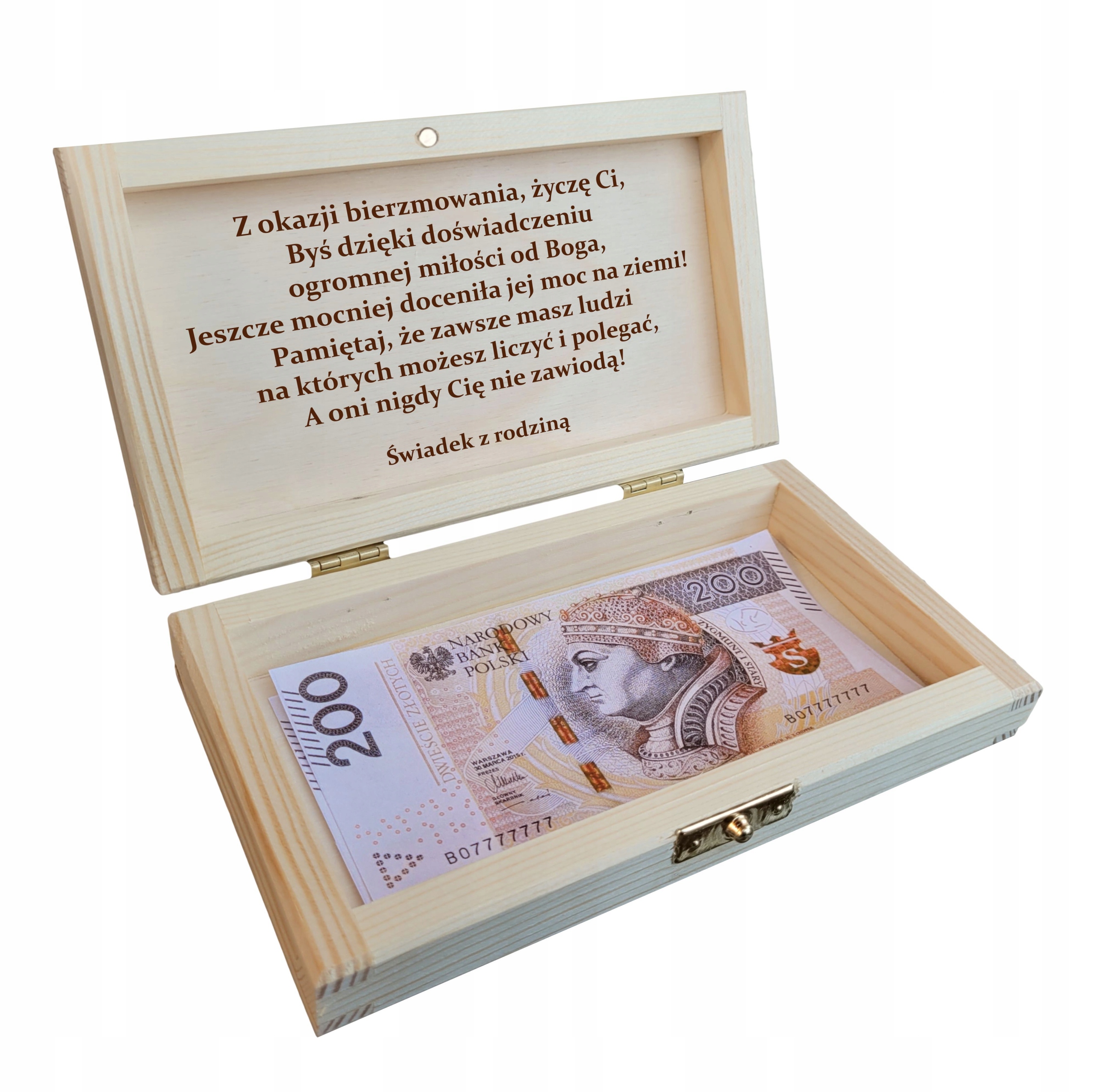 Хочете елегантно зробити подарунок у вигляді готівки? У нас є рішення для вас - скринька з підтвердженням, коробка з гравіюванням - ідеальний подарунок. Подарунок 3 в 1: футляр для банкнот, побажань замість картки та коробка, яка буде сувеніром, яка може служити коробкою для дрібничок.